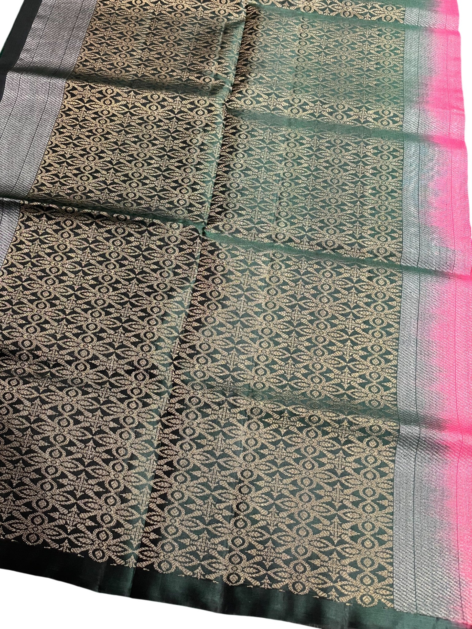 Southloom Pure Handloom Bridal Kanchipuram Silk Saree with Korvai Work (Maroon & Green)