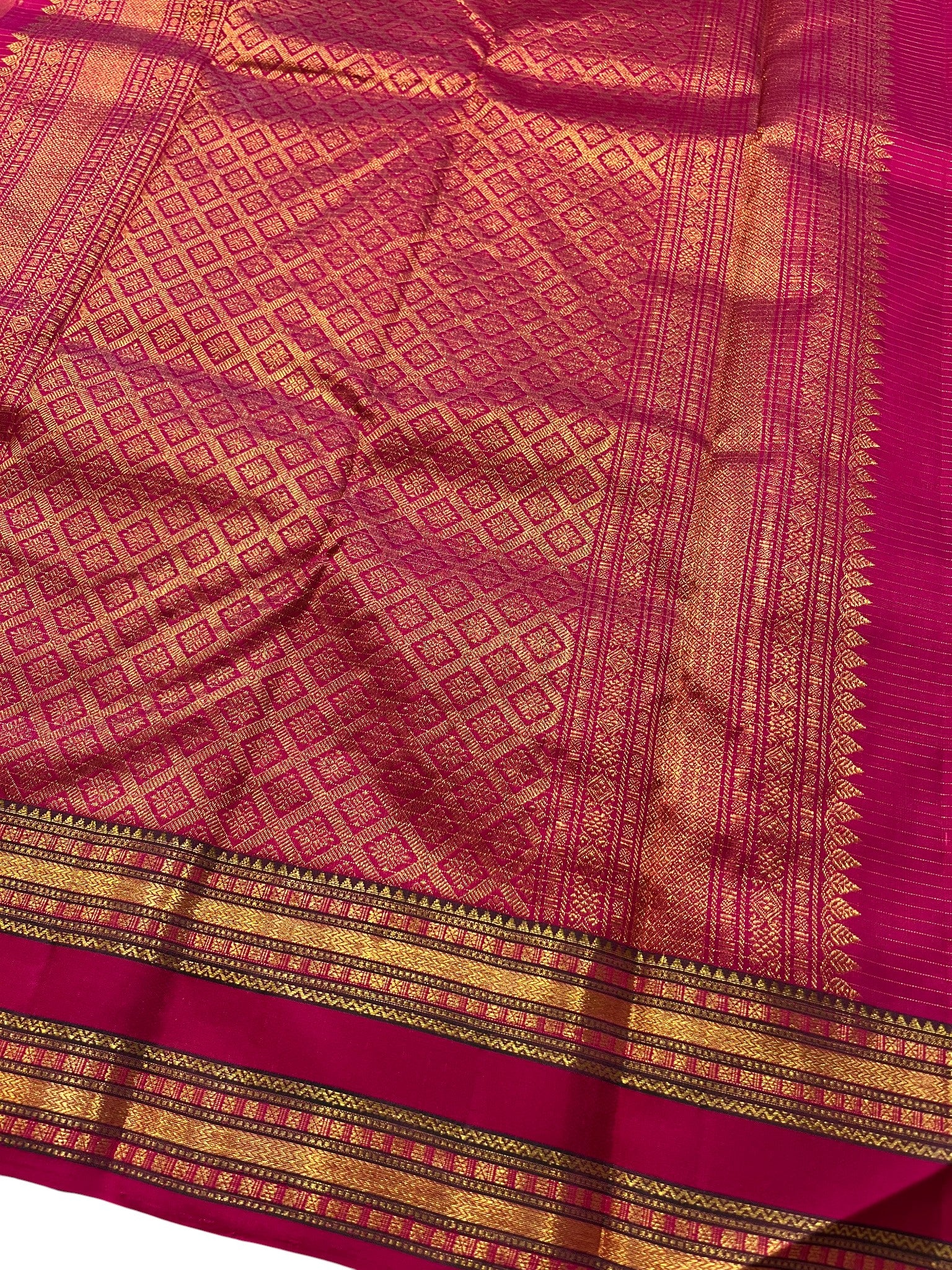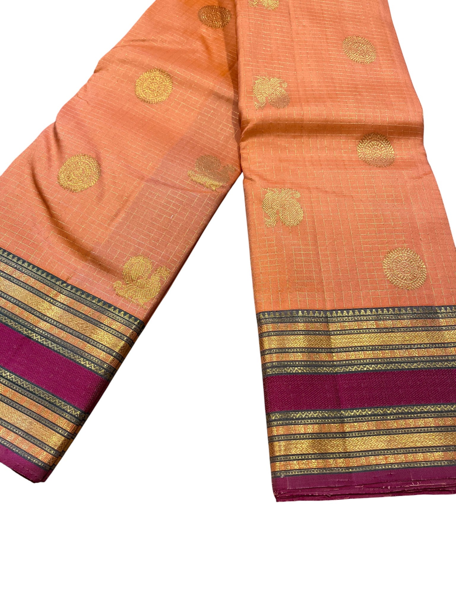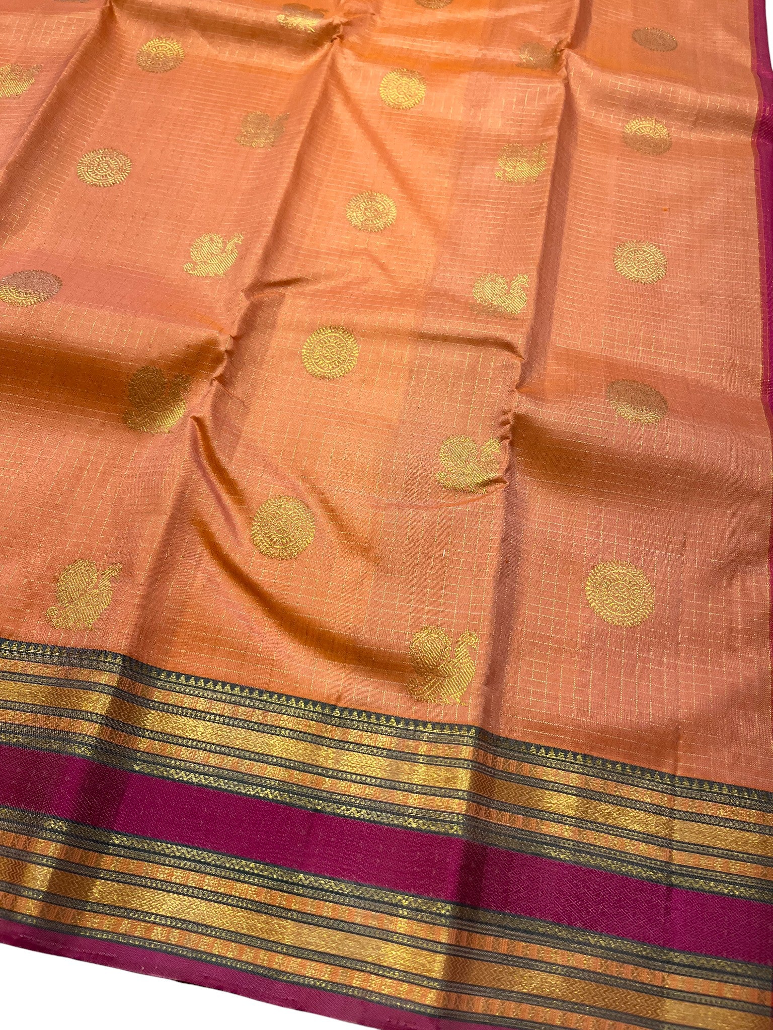 Southloom Pure Handloom Bridal Kanchipuram Silk Saree with Korvai Work (Peach & Magenta)