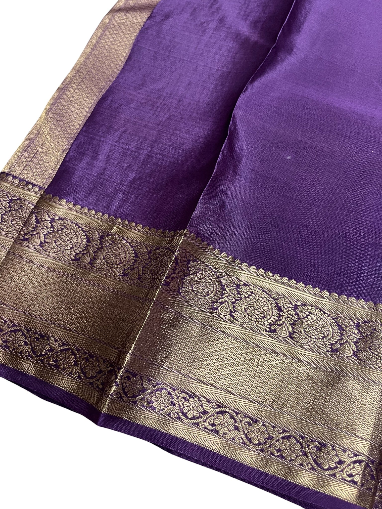 Southloom Pure Handloom Bridal Kanchipuram Silk Saree with Korvai Work (Violet)