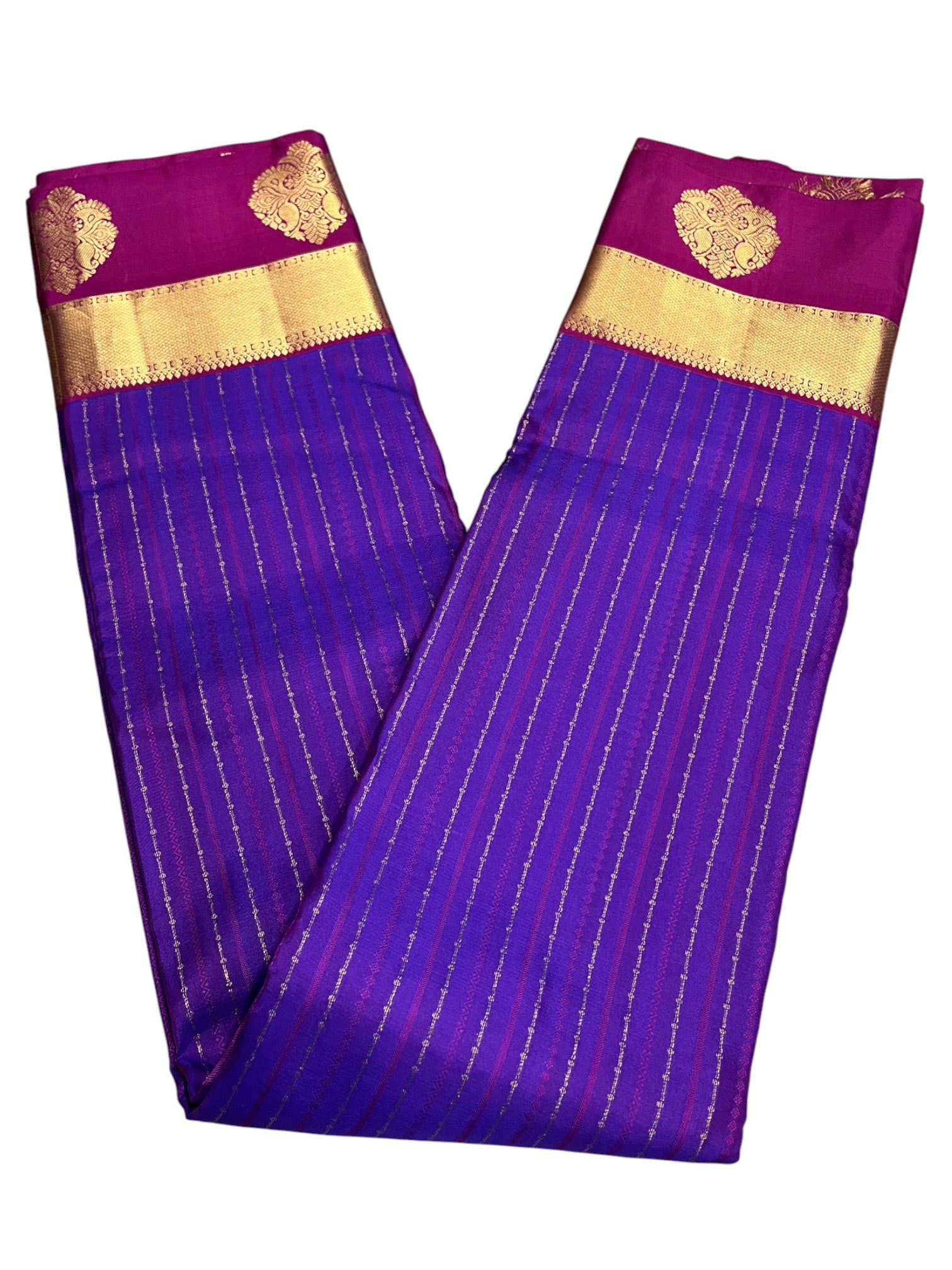 Southloom Pure Handloom Bridal Kanchipuram Silk Saree with Korvai Work (Violet & Magenta)