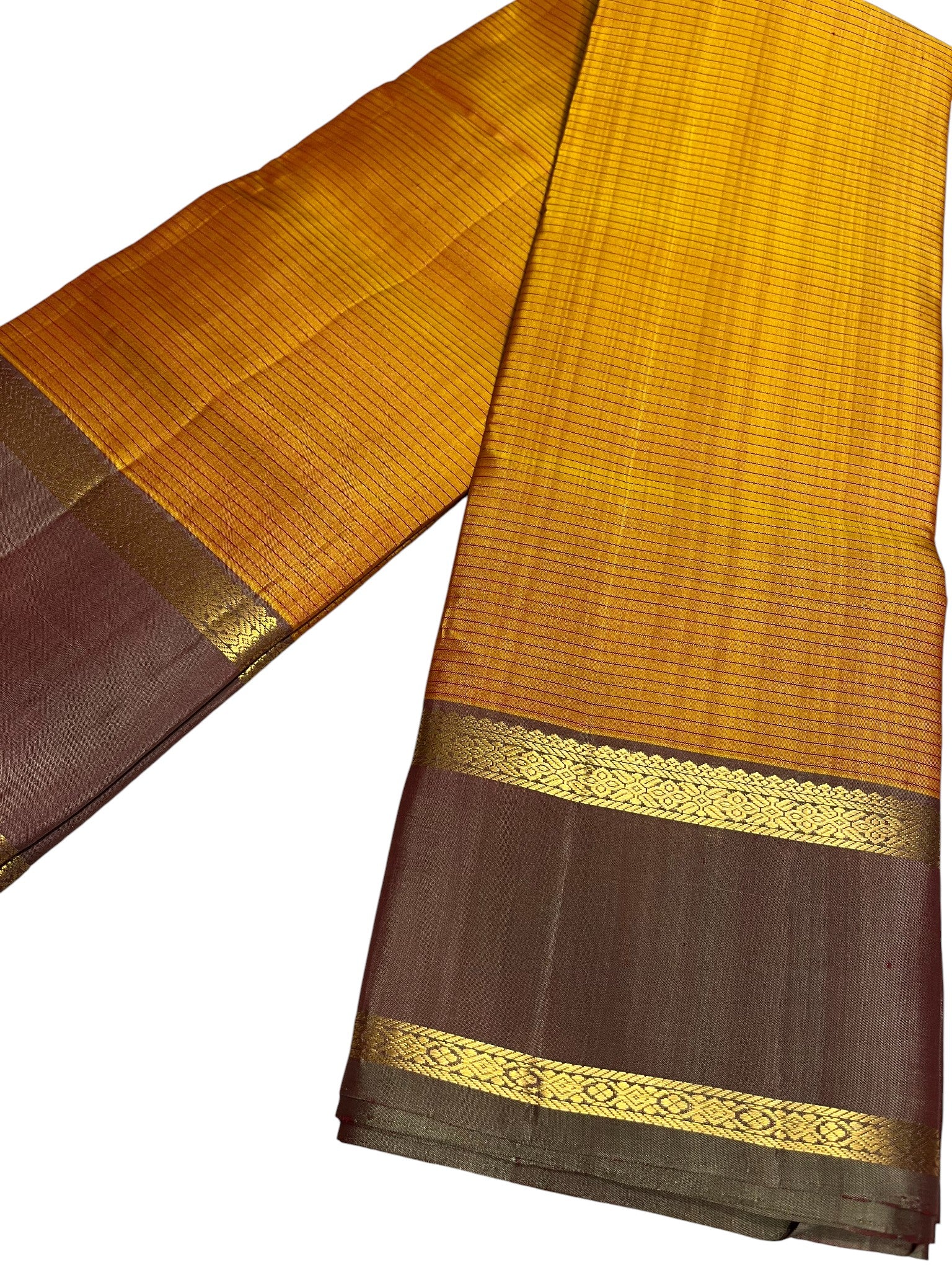 Southloom Pure Handloom Bridal Kanchipuram Silk Saree with Korvai Work (Yellow)