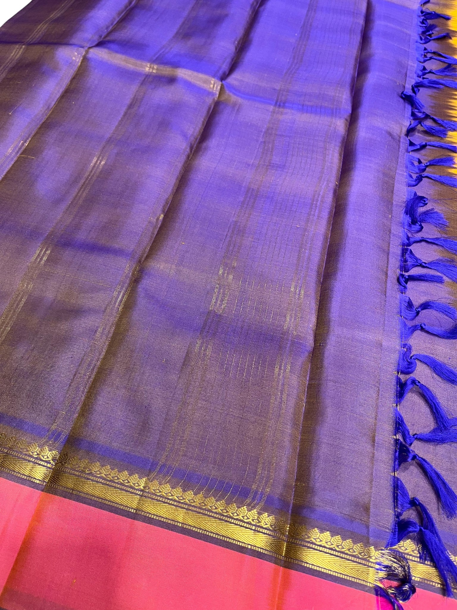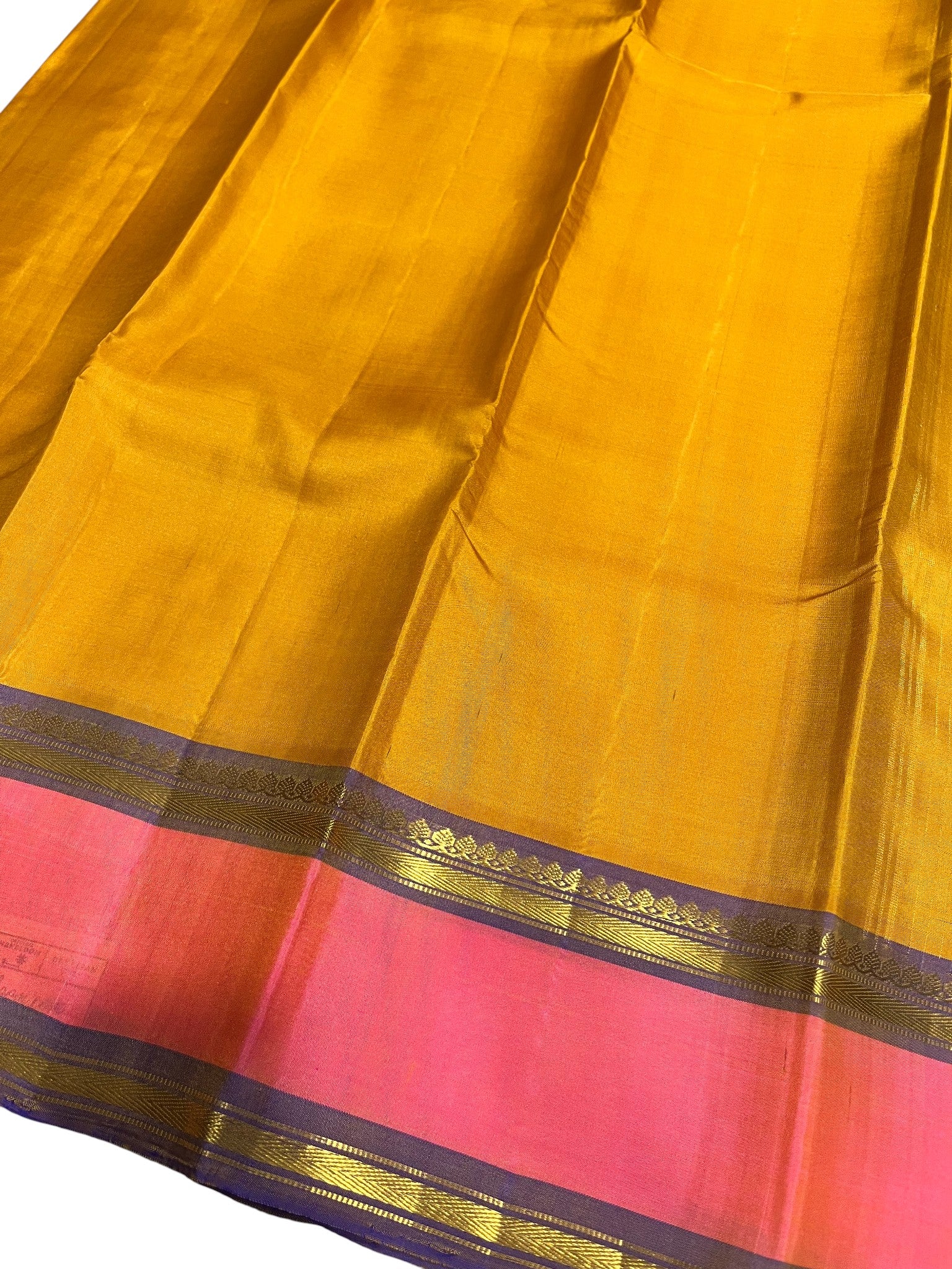 Southloom Pure Handloom Bridal Kanchipuram Silk Saree with Korvai Work (Yellow & Blue)