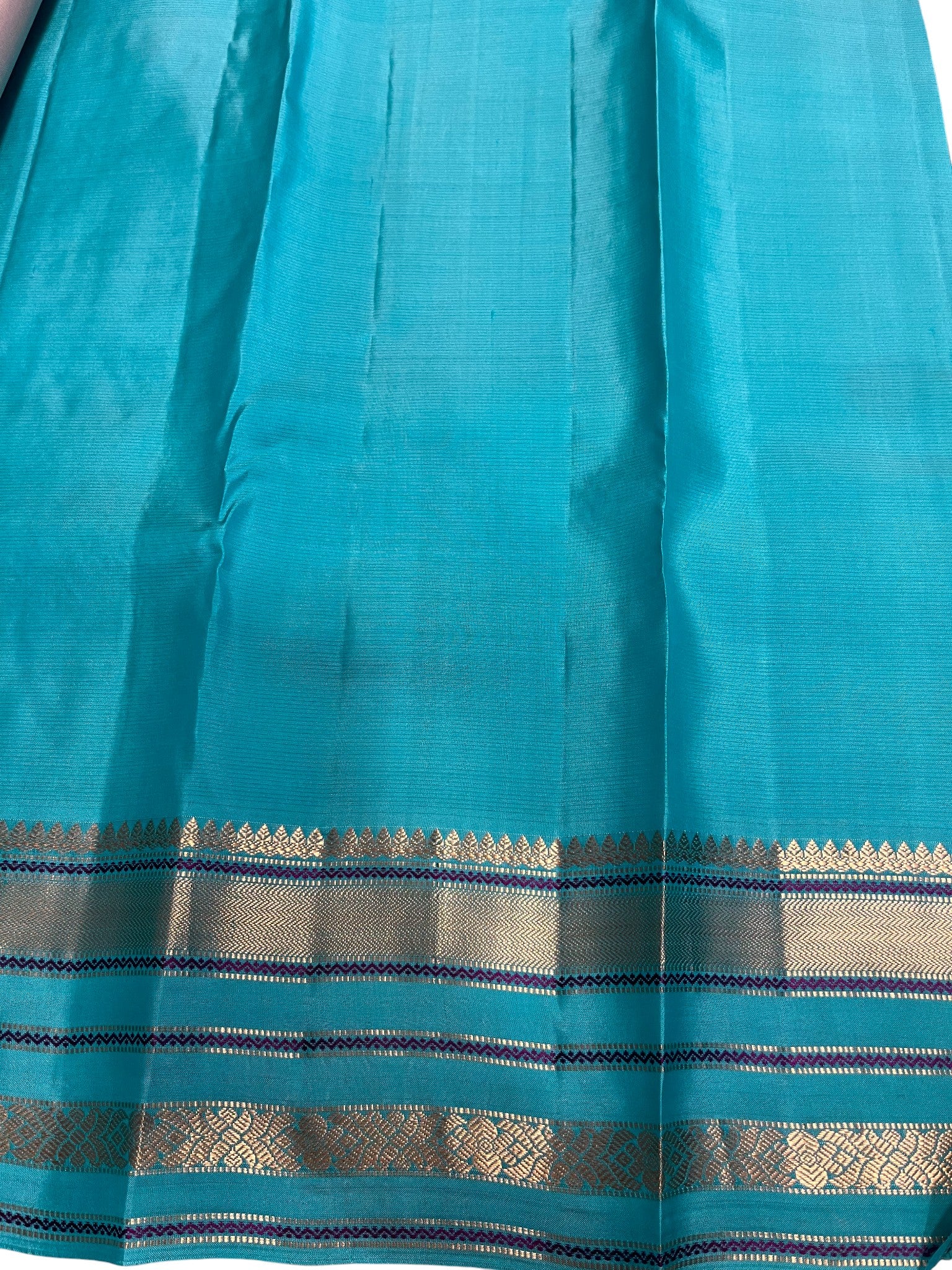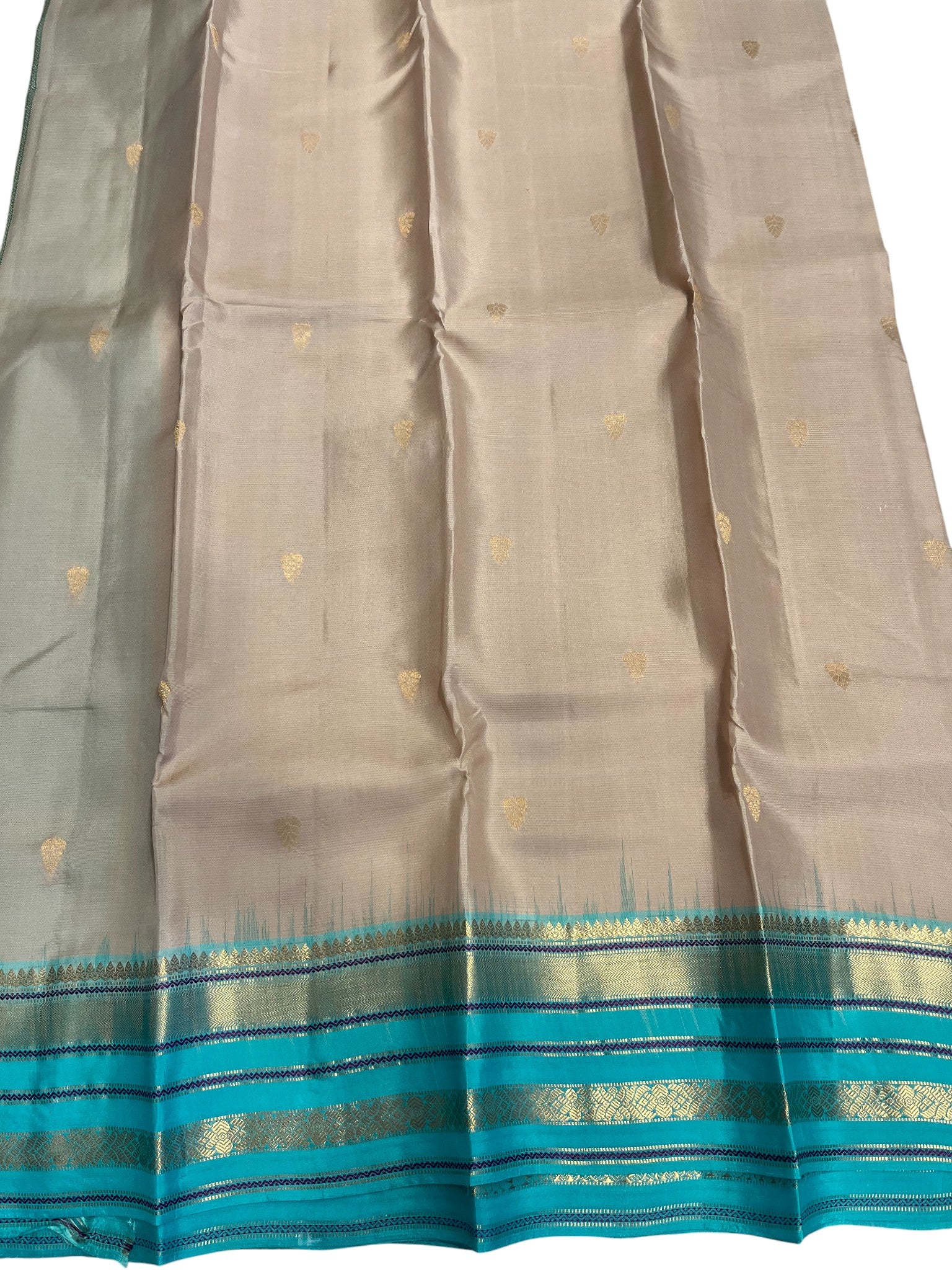 Southloom Pure Handloom Bridal Kanchipuram Silk Saree with Korvai Work(Beige & Blue)