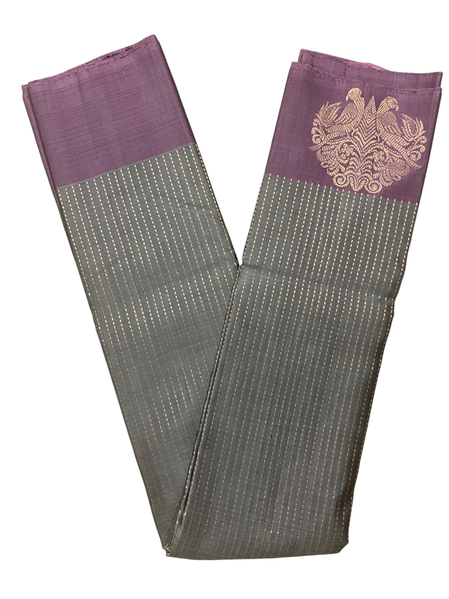 Southloom Pure Handloom Bridal Kanchipuram Silk Saree with Korvai Work(Gray & Lavander)