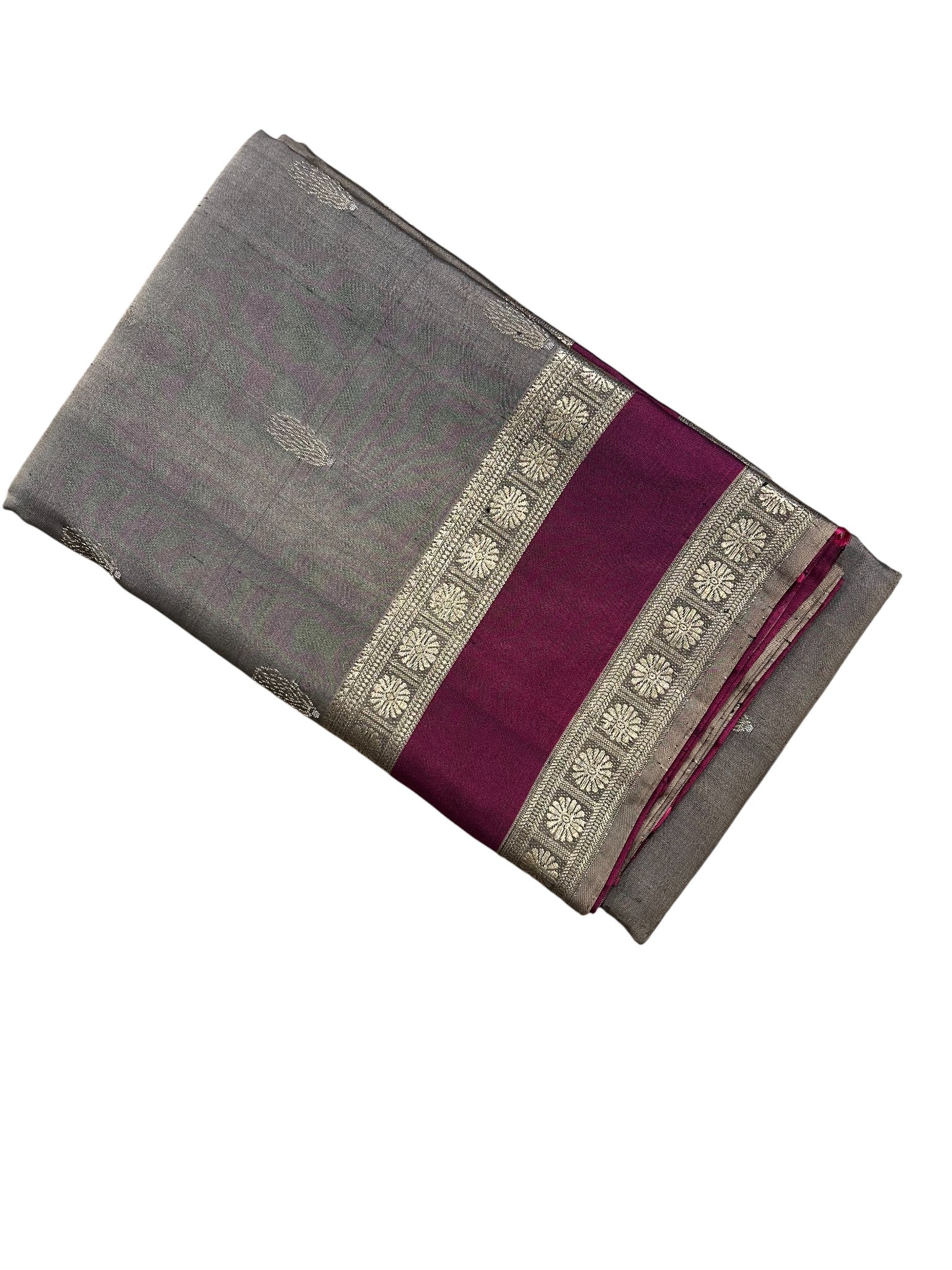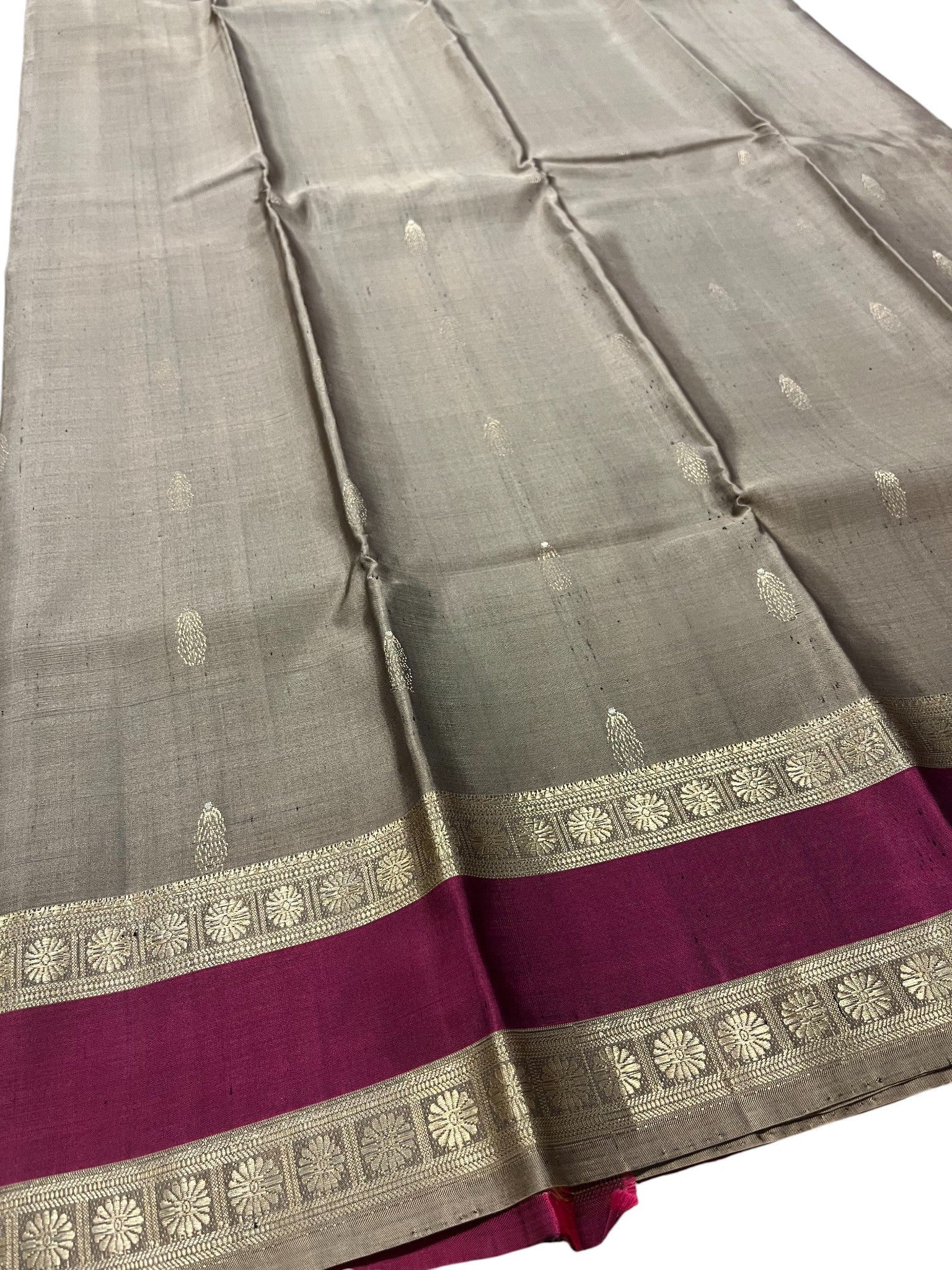 Southloom Pure Handloom Bridal Kanchipuram Silk Saree with Korvai Work(Gray&Magenta)