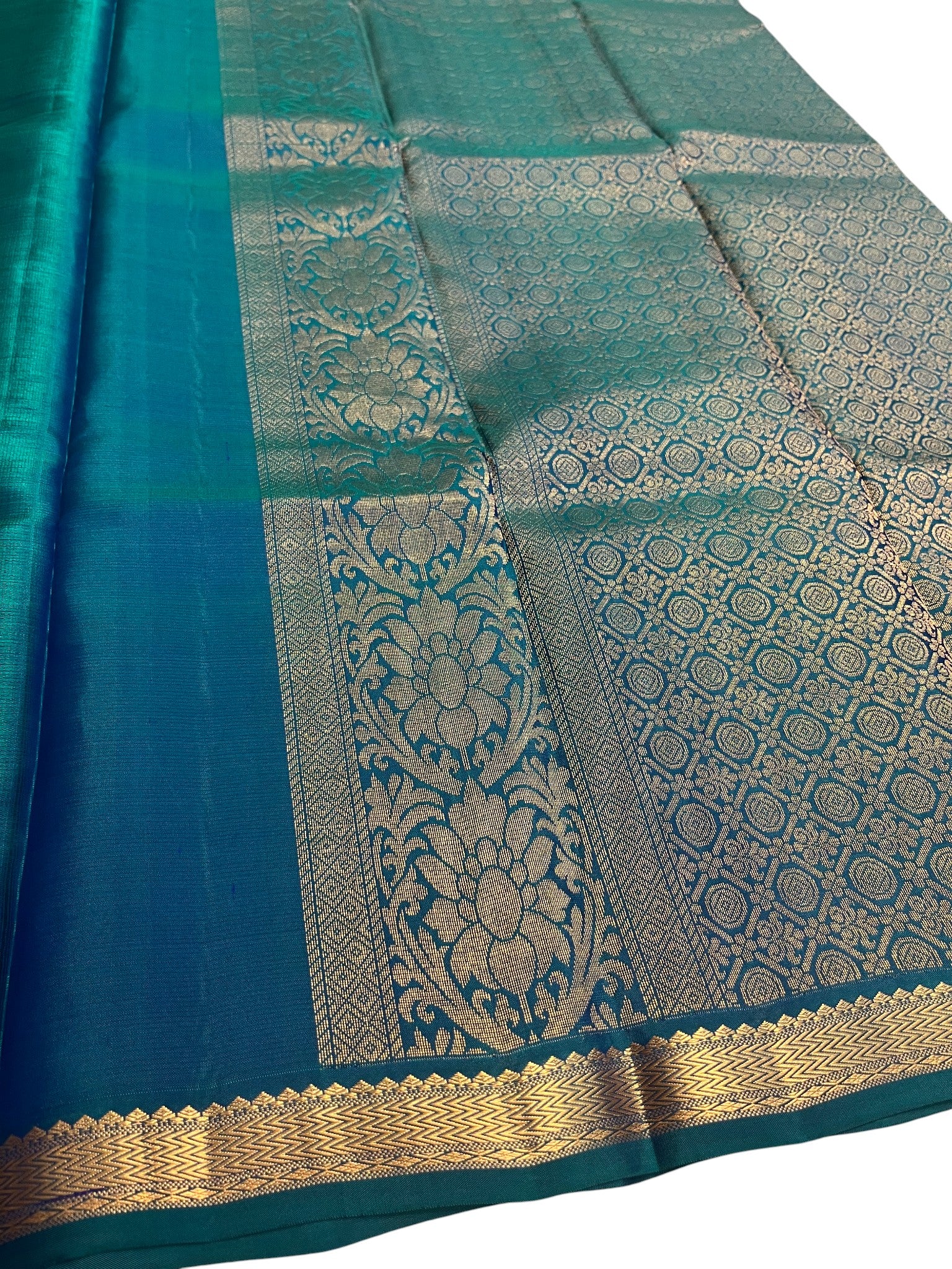 Southloom Pure Handloom Bridal Kanchipuram Silk Saree with Korvai Work(Green & Blue)