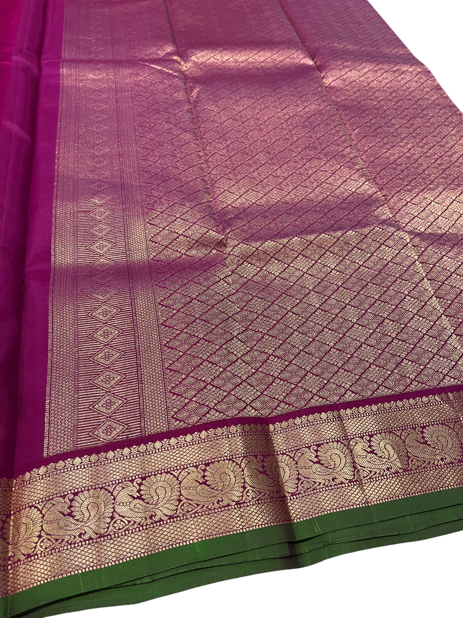 Material: 100% Pure Kanchipuram Silk with a lustrous finish
