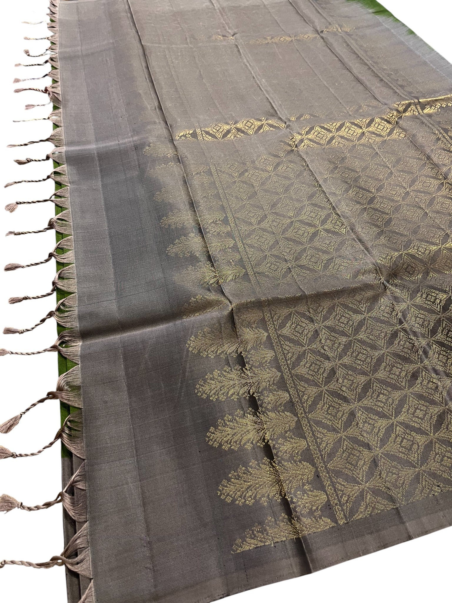 Southloom Pure Handloom Bridal Kanchipuram Silk Saree with Korvai Work(Green&Gray)
