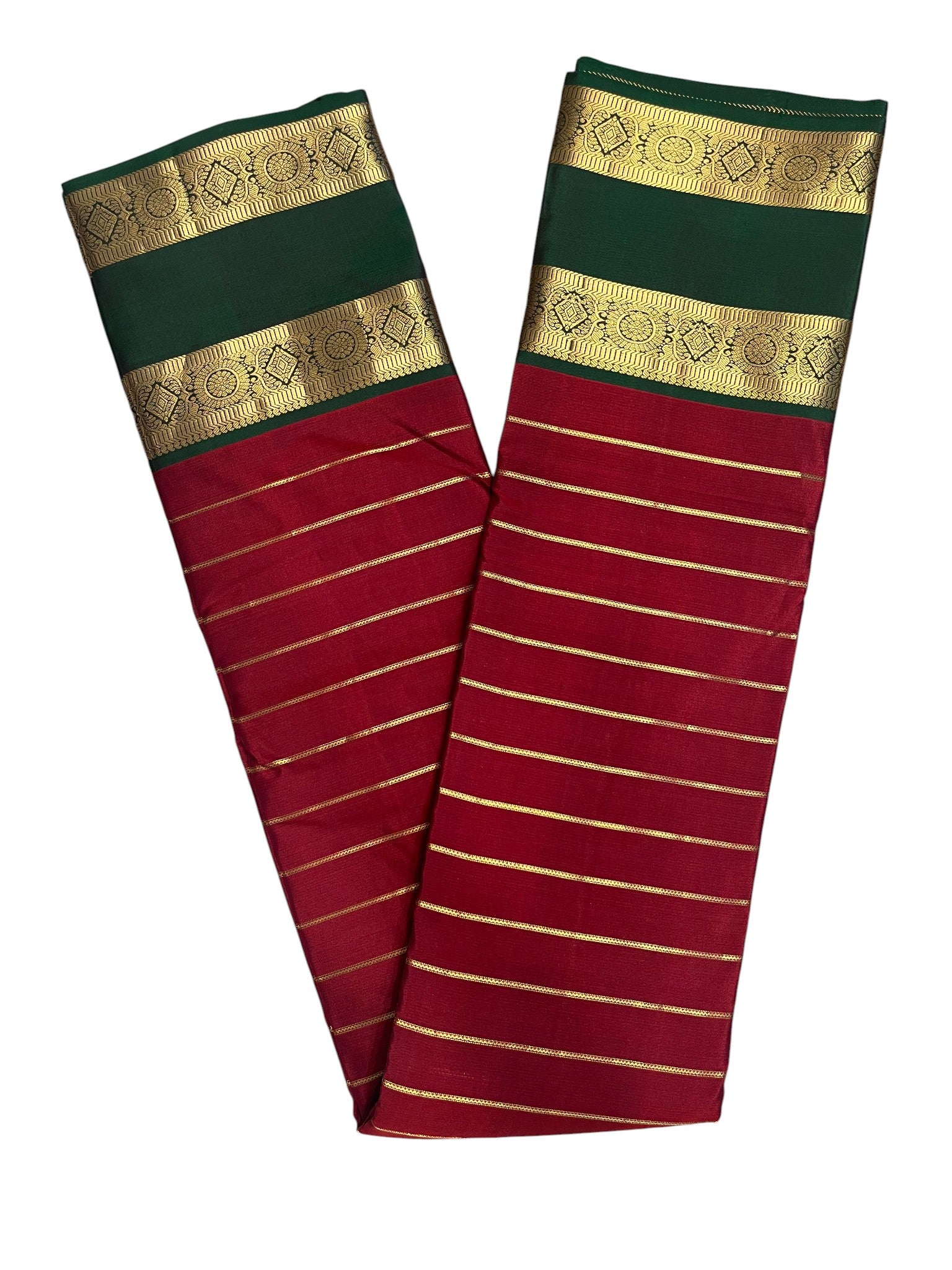 Southloom Pure Handloom Bridal Kanchipuram Silk Saree with Korvai Work(Red & Green)