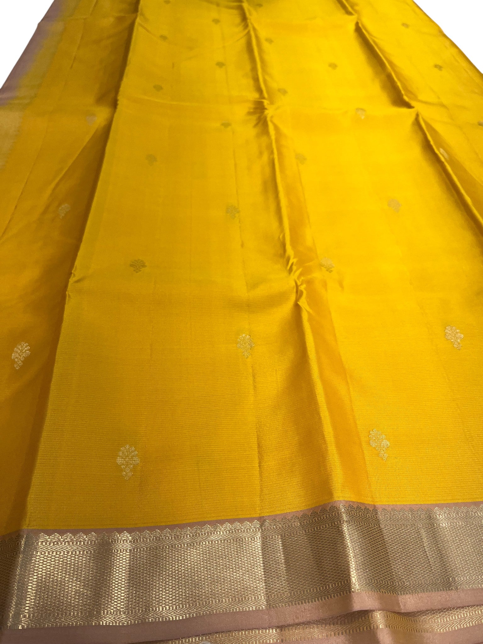 Southloom Pure Handloom Bridal Kanchipuram Silk Saree with Korvai Work(Yellow&Beige)