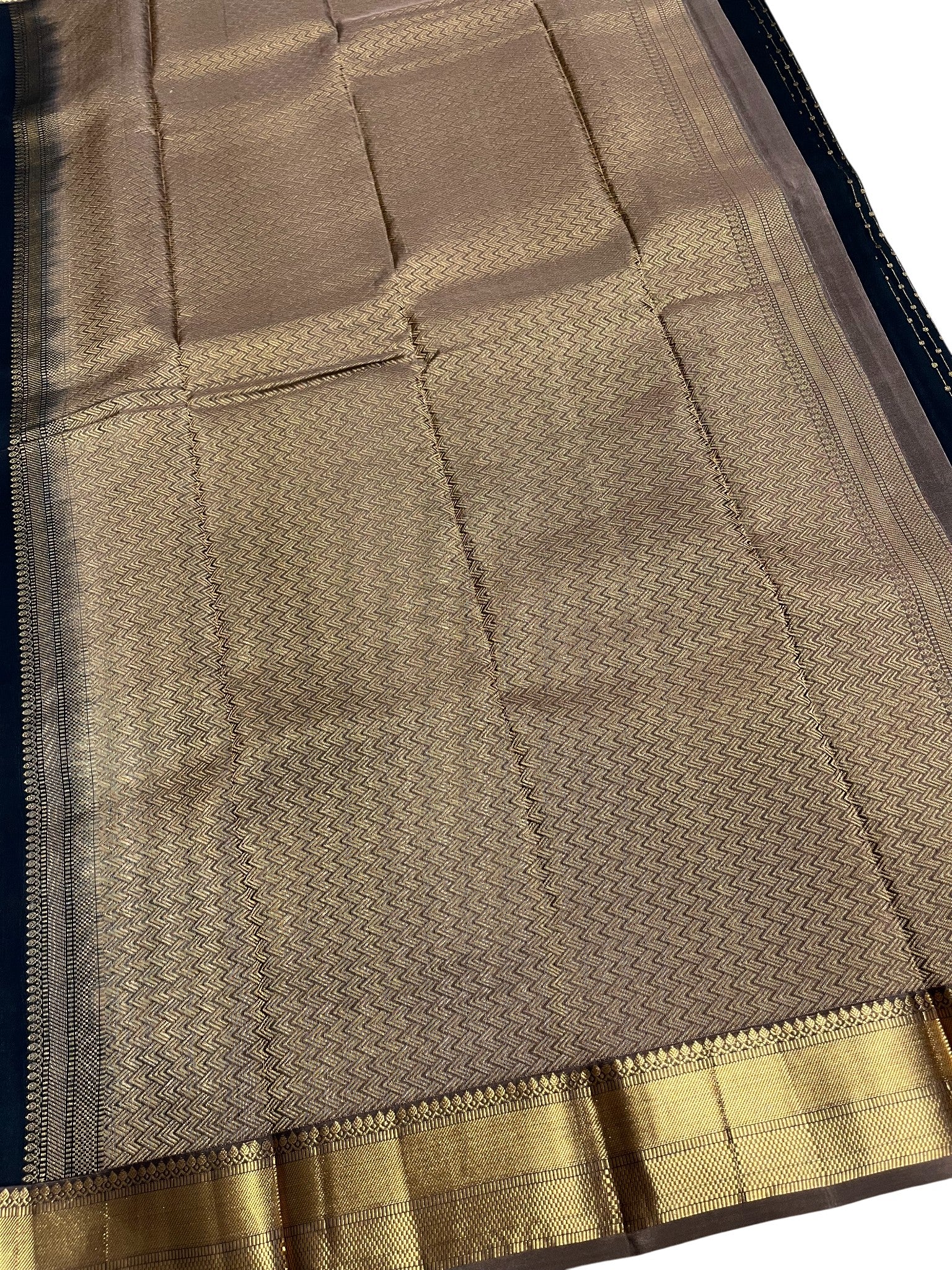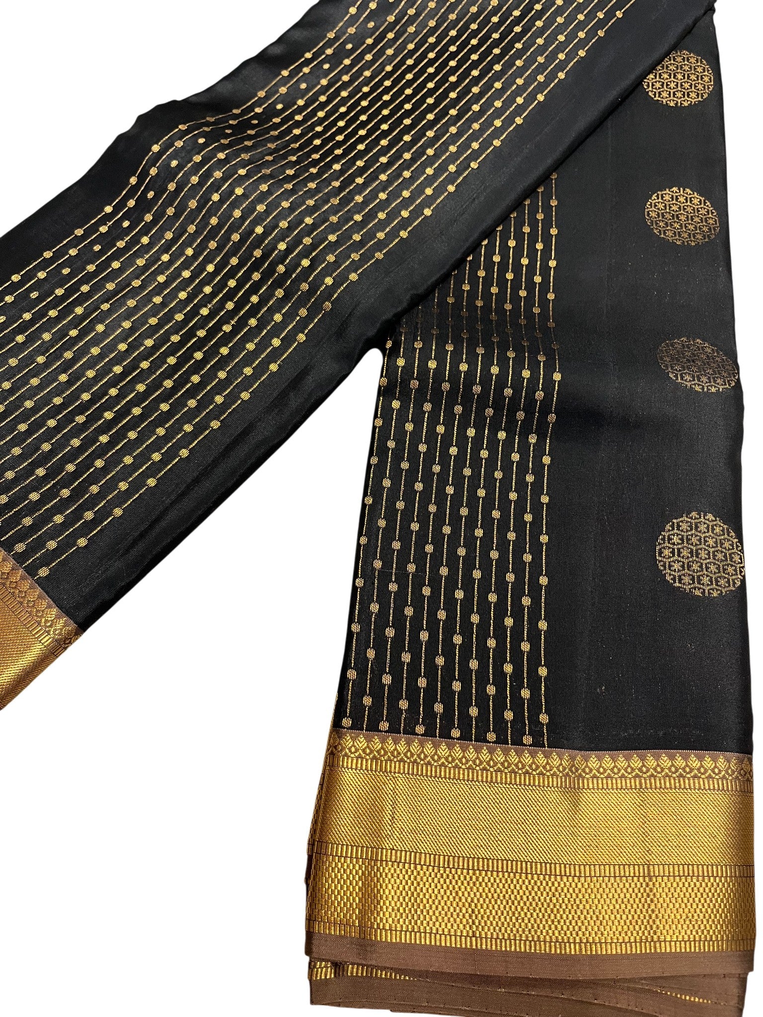 Southloom Pure Handloom Kanchipuram Silk Saree with Butta Work (Black & Brown)