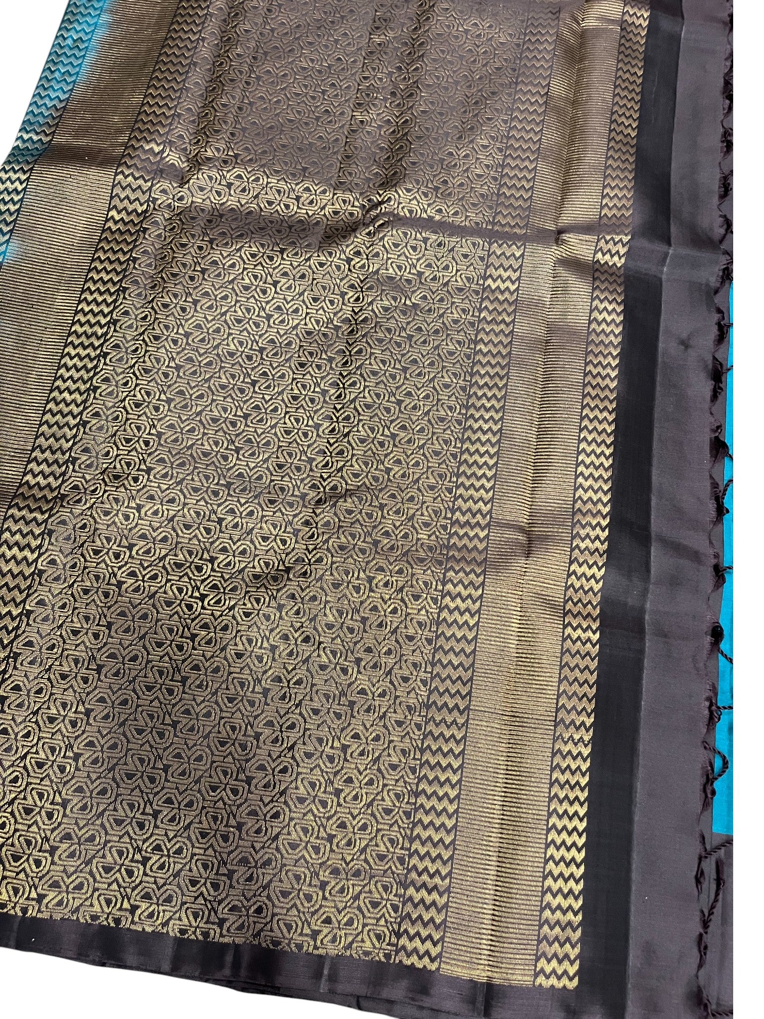 Southloom Pure Handloom Kanchipuram Silk Saree with Butta Work (Blue & Brown)