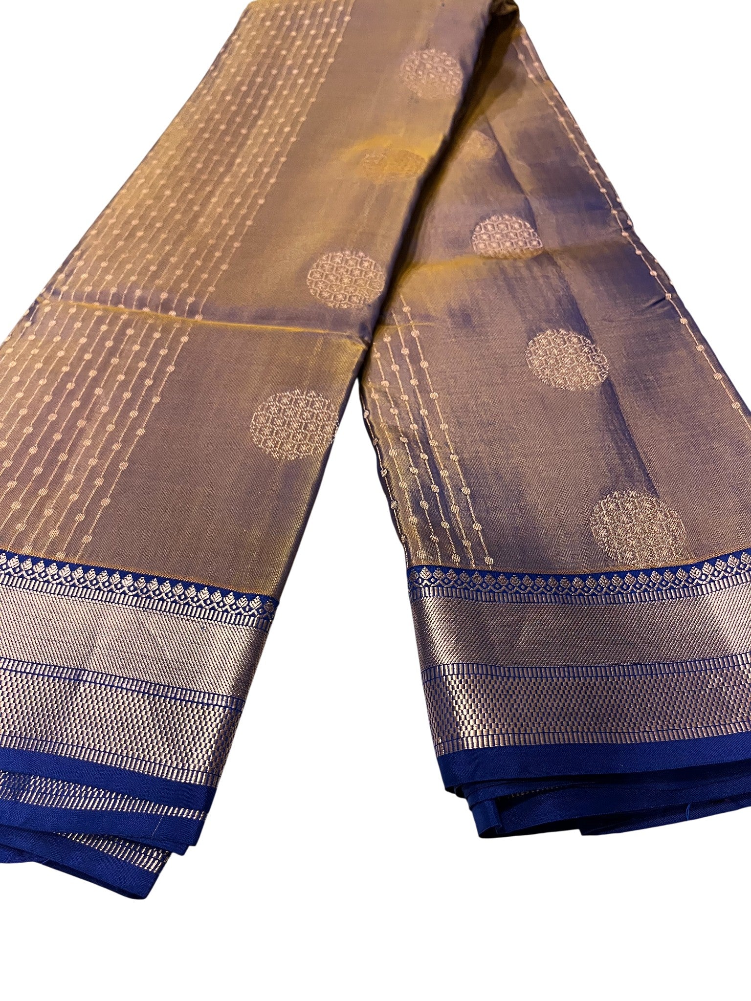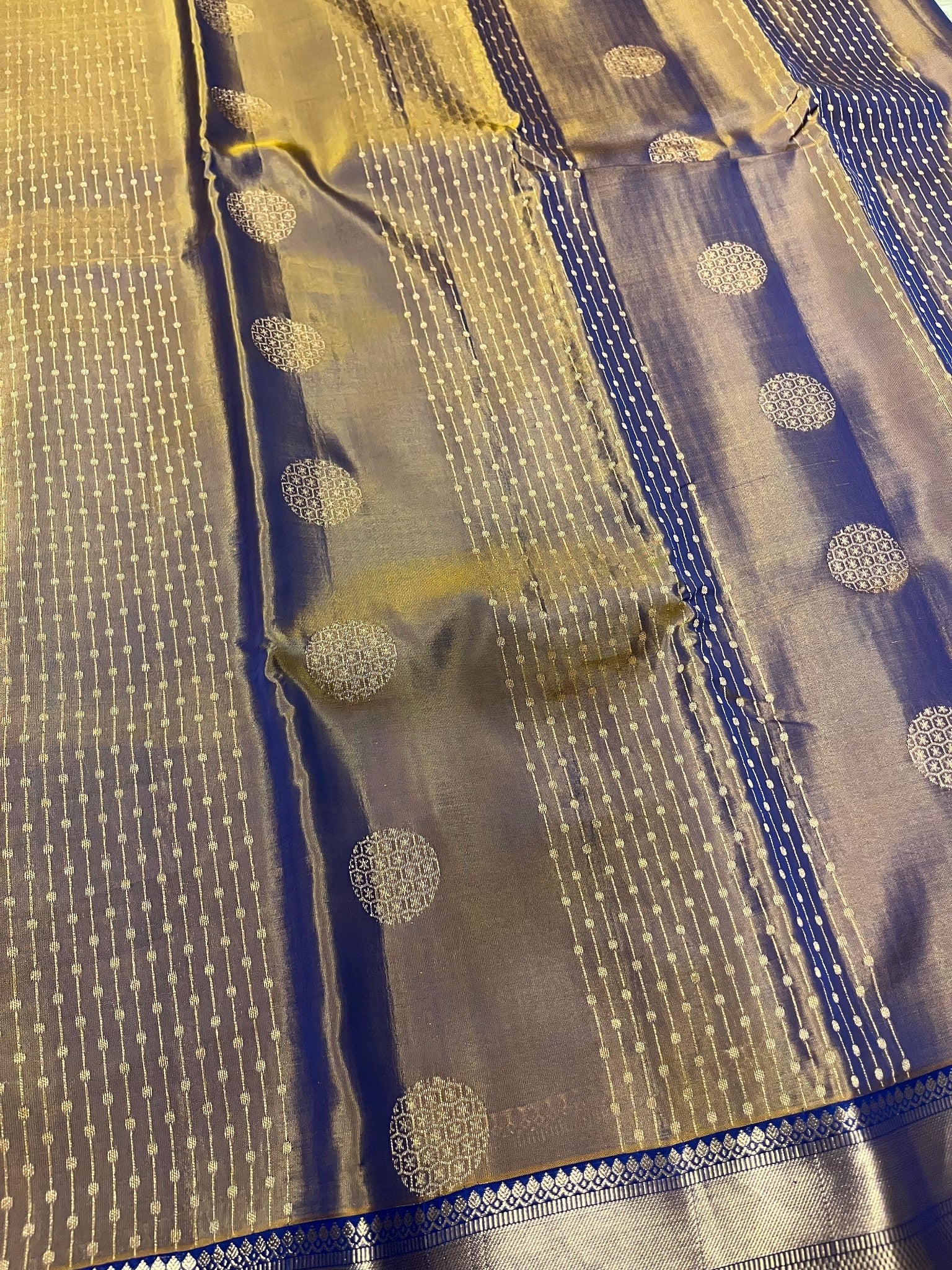 Southloom Pure Handloom Kanchipuram Silk Saree with Korvai Work (Golden & Blue)