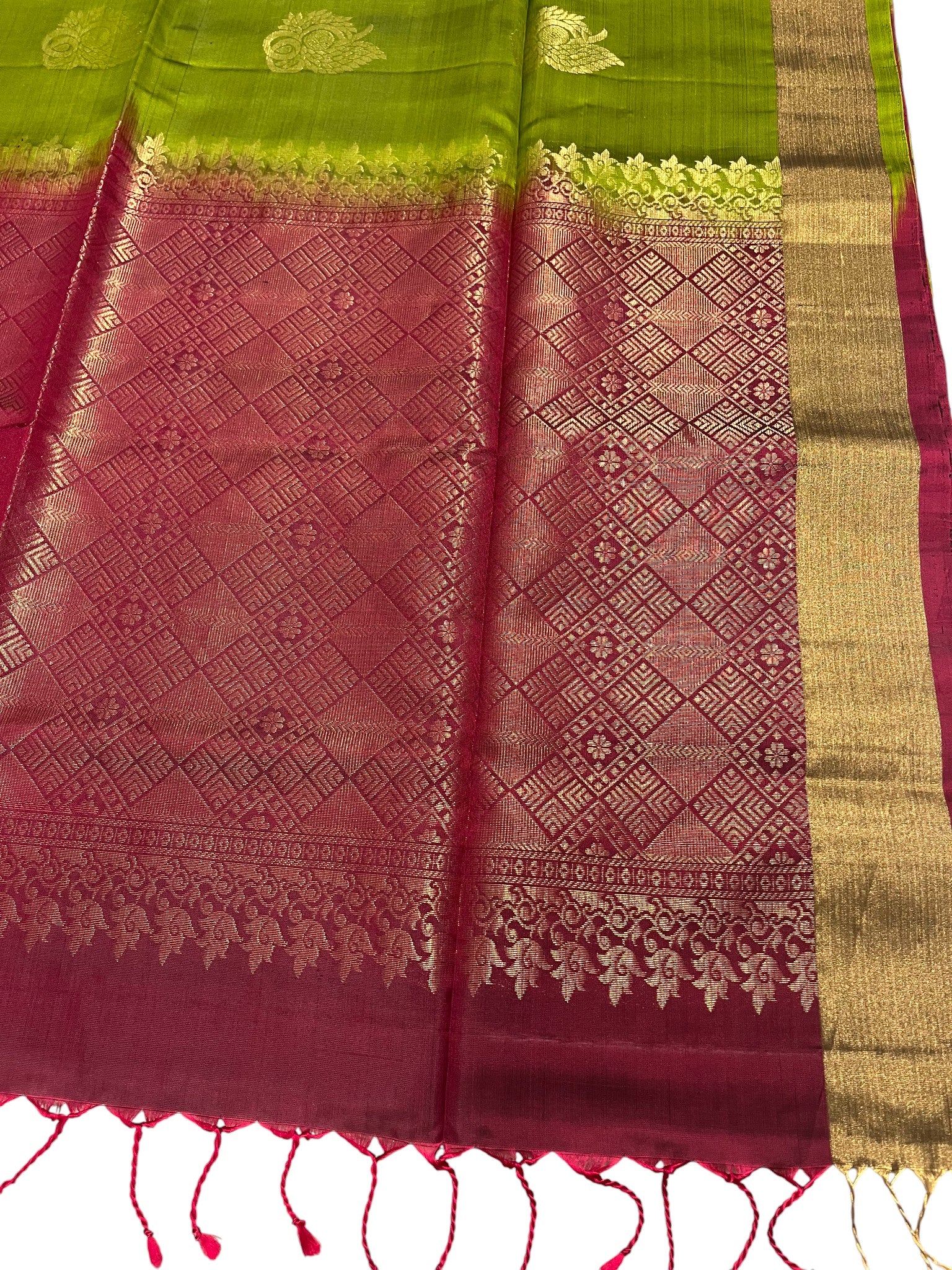 Southloom Pure Handloom Kanchipuram Silk Saree with Butta Work (Green & Maroon)