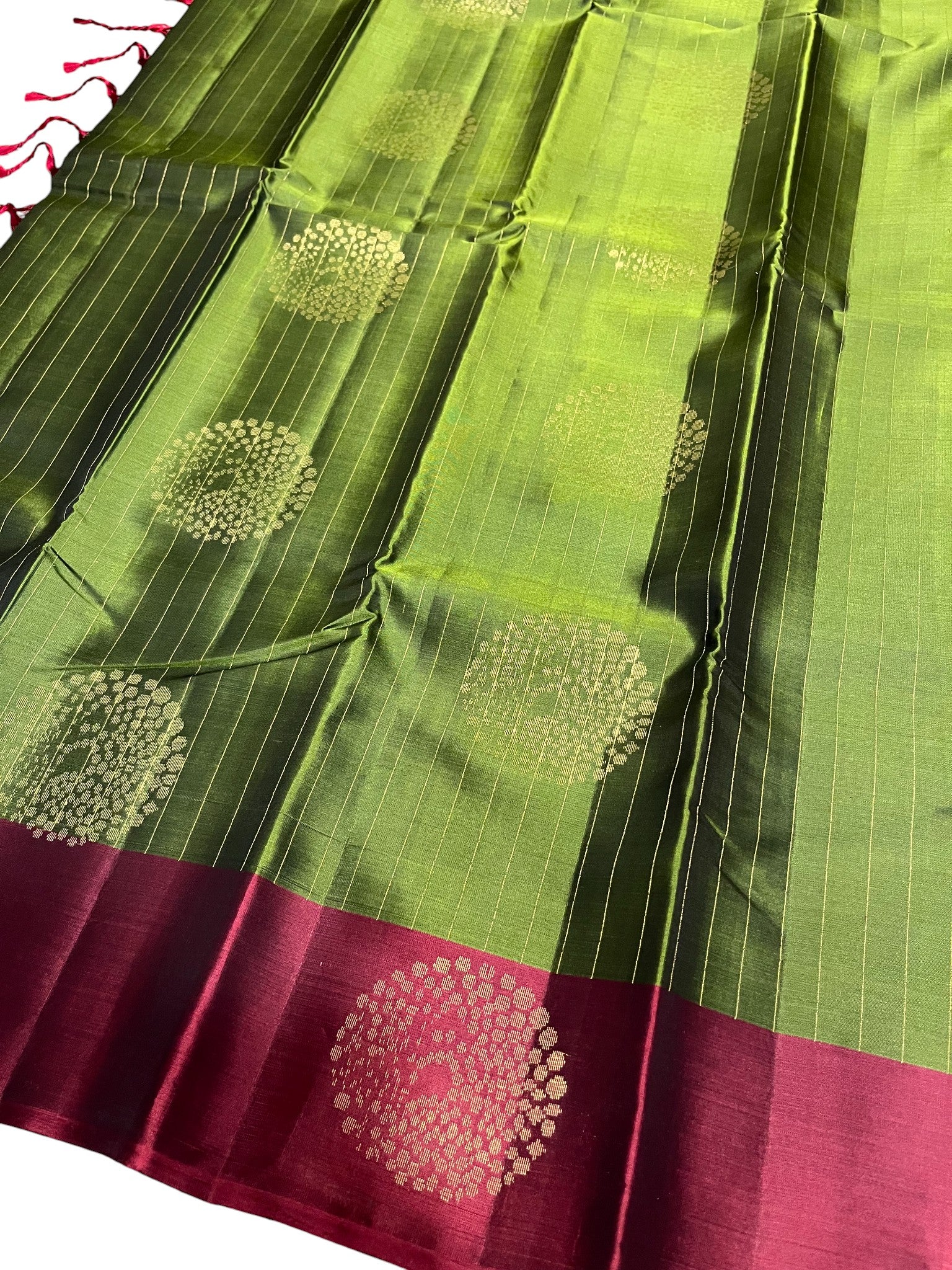 Southloom Pure Handloom Kanchipuram Silk Saree with Butta Work (Green & Maroon)