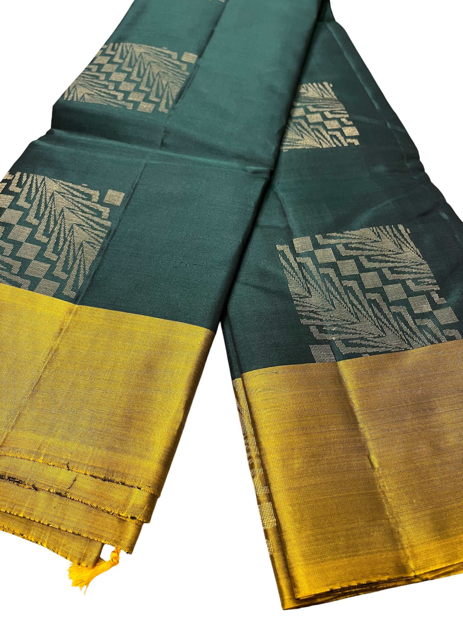 Southloom Pure Handloom Kanchipuram Silk Saree with Butta Work (Green & Yellow)