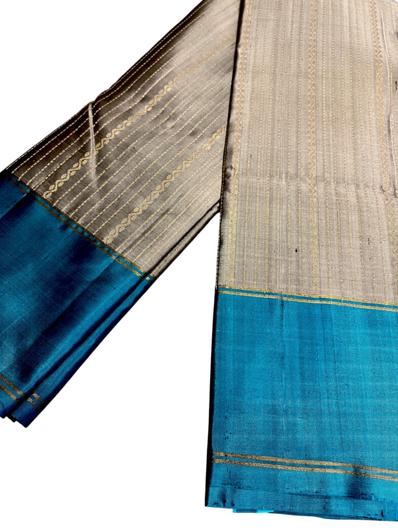 Southloom Pure Handloom Kanchipuram Silk Saree with Butta Work (Grey & Blue)