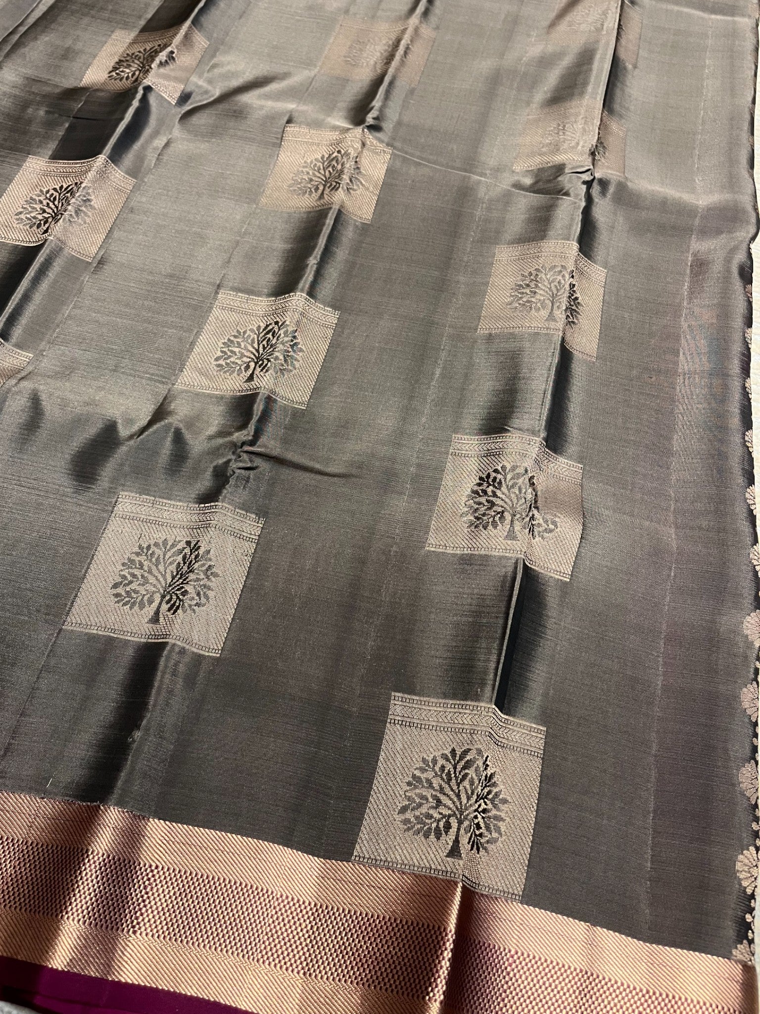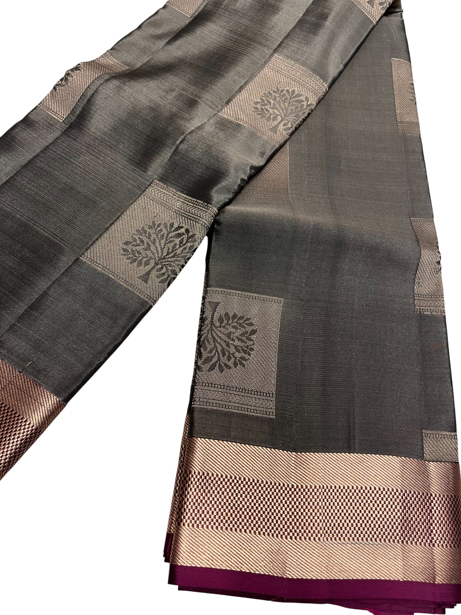Southloom Pure Handloom Kanchipuram Silk Saree with Butta Work (Grey & Magenta)