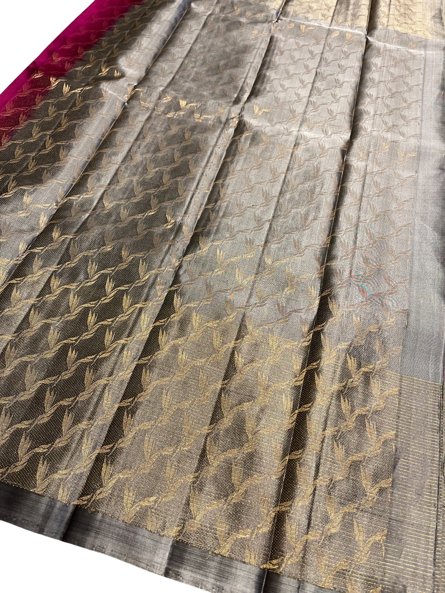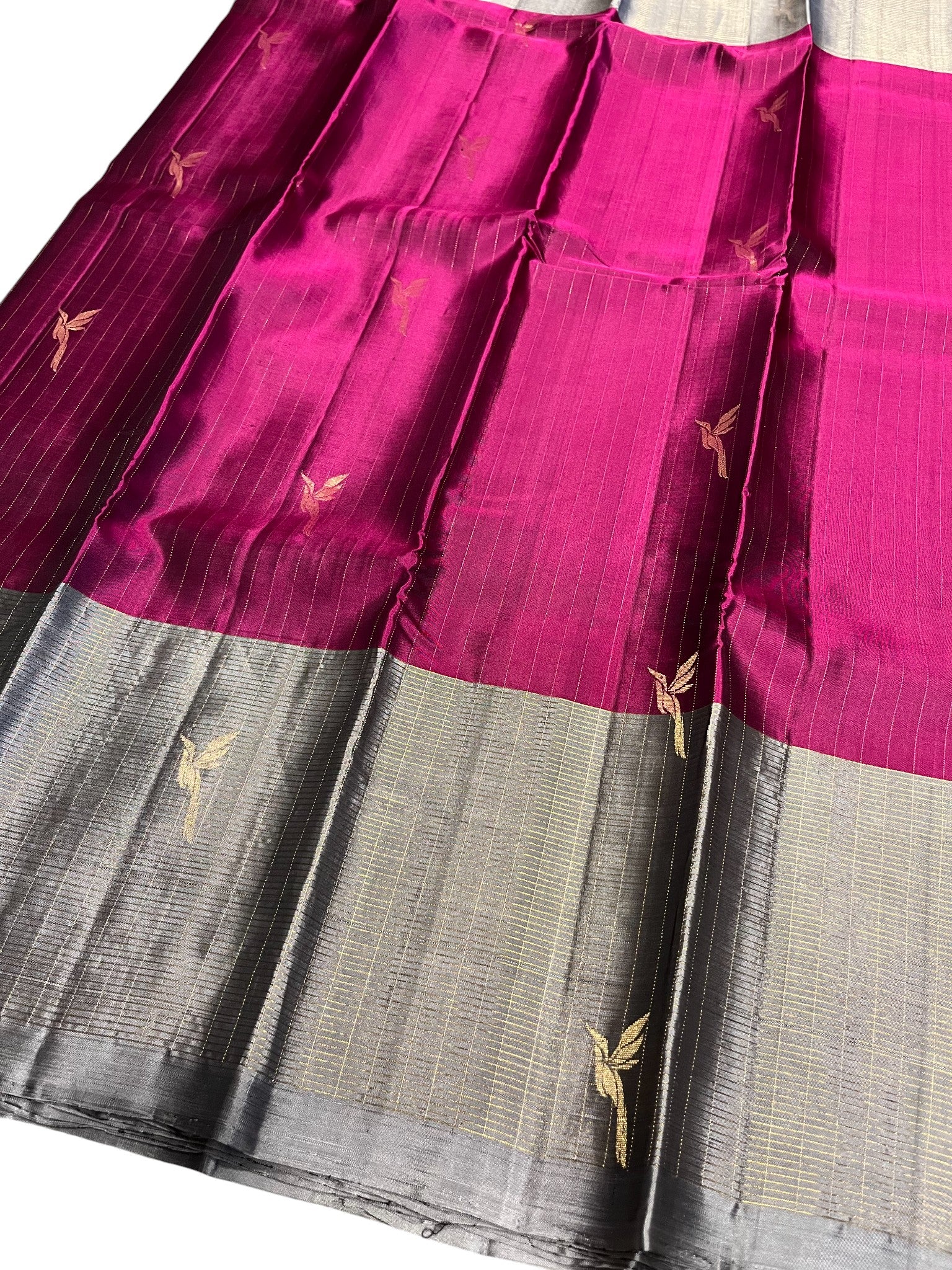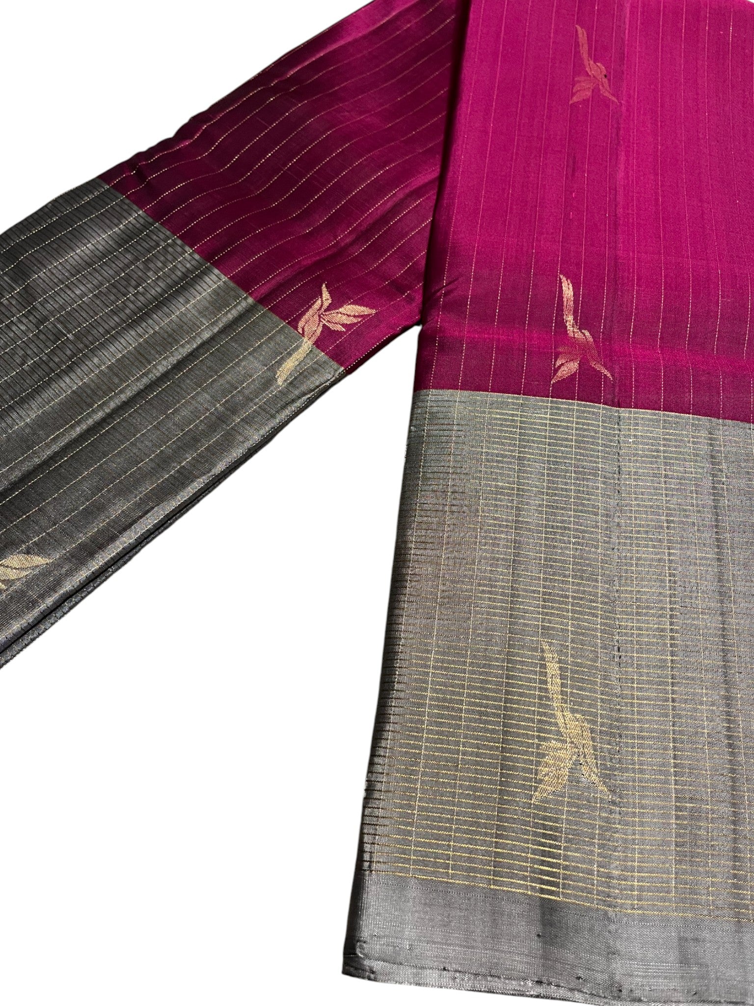 Southloom Pure Handloom Kanchipuram Silk Saree with Butta Work (Magenta& Grey)