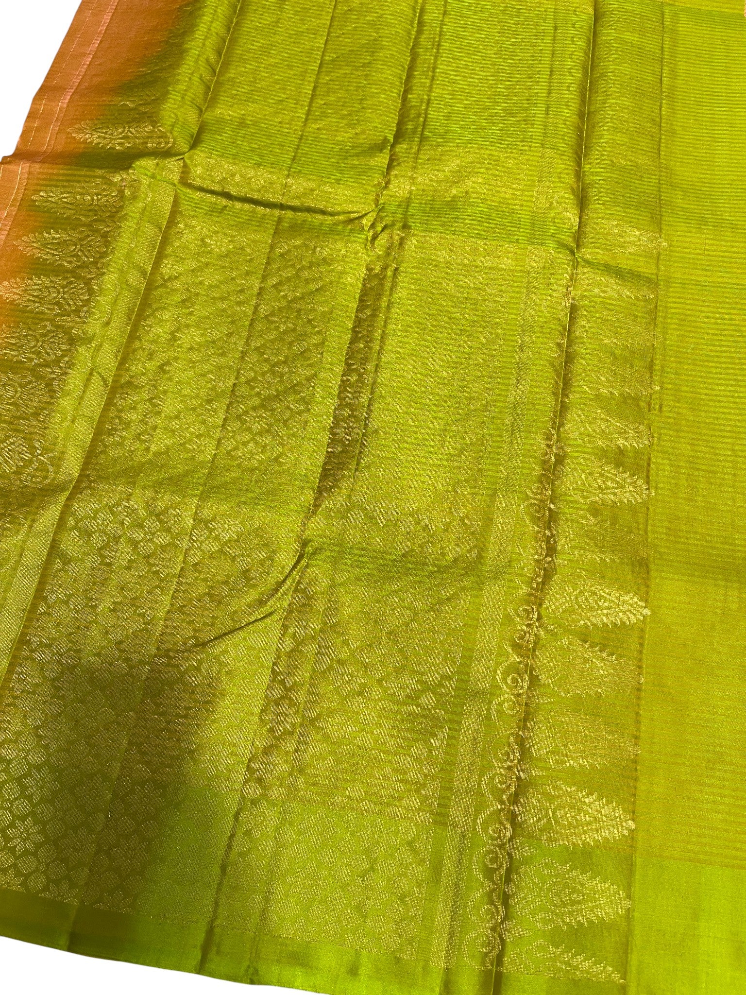 Southloom Pure Handloom Kanchipuram Silk Saree with Butta Work (Orange & Green)