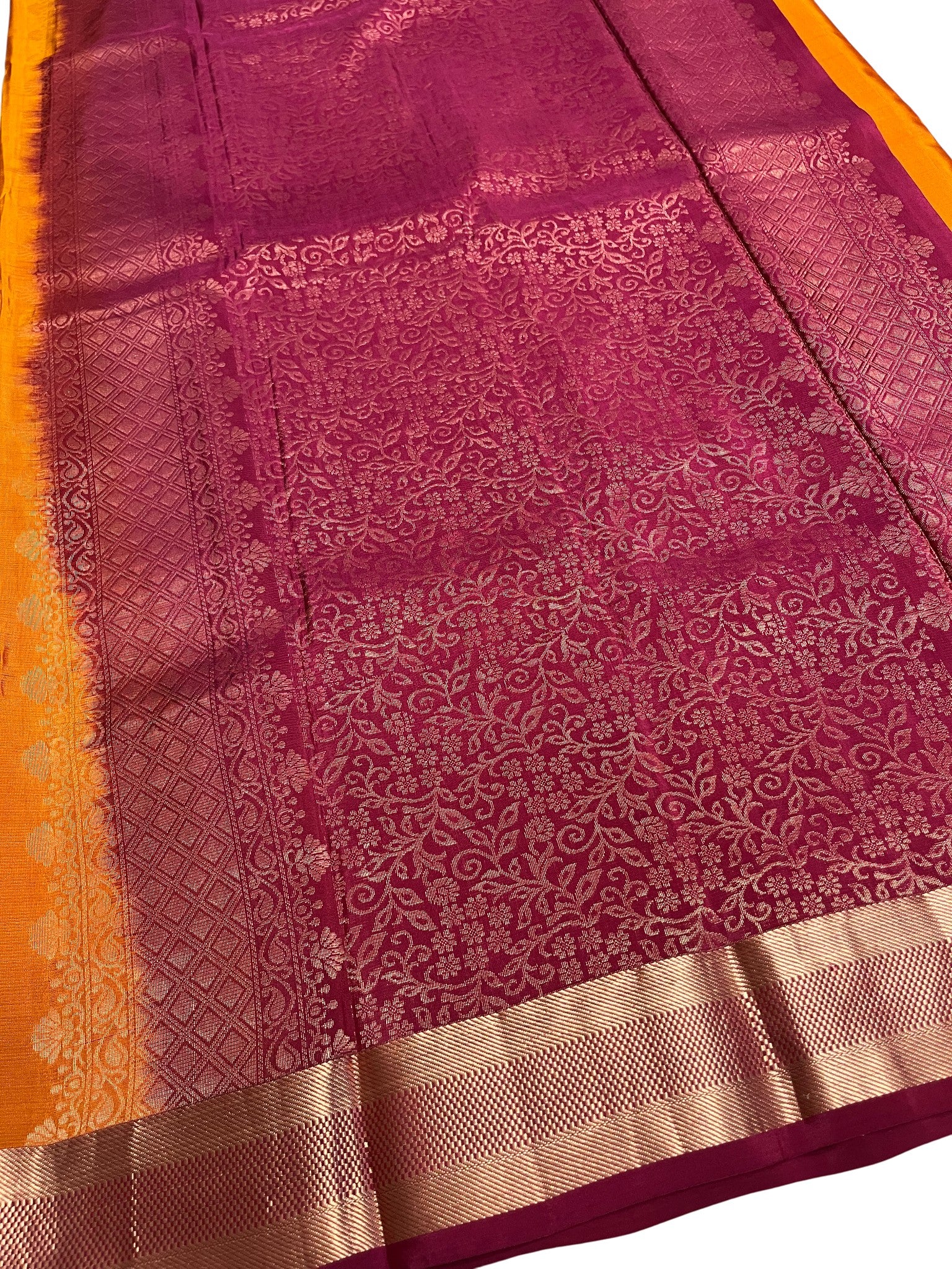 Southloom Pure Handloom Kanchipuram Silk Saree with Butta Work (Orange & Magenta)