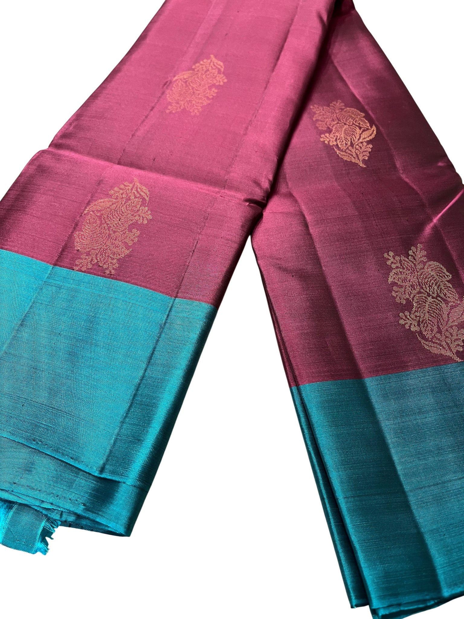 Southloom Pure Handloom Kanchipuram Silk Saree with Butta Work (Purple & Blue)