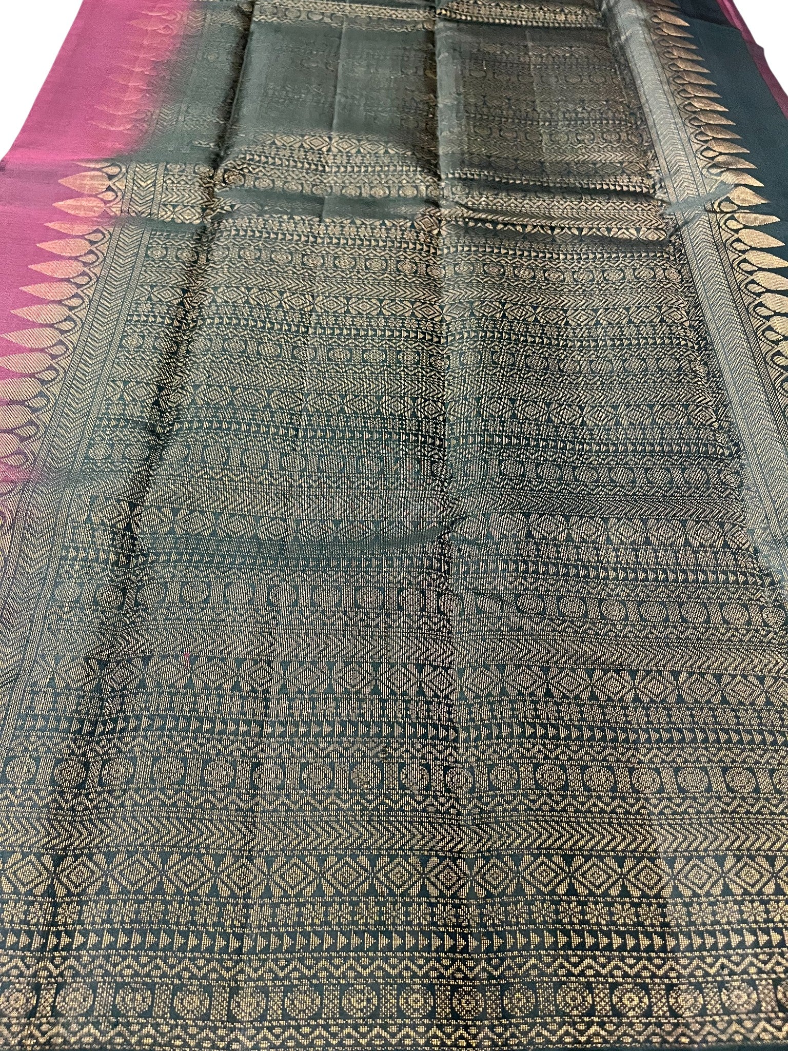 Southloom Pure Handloom Kanchipuram Silk Saree with Butta Work (Purple & Green)