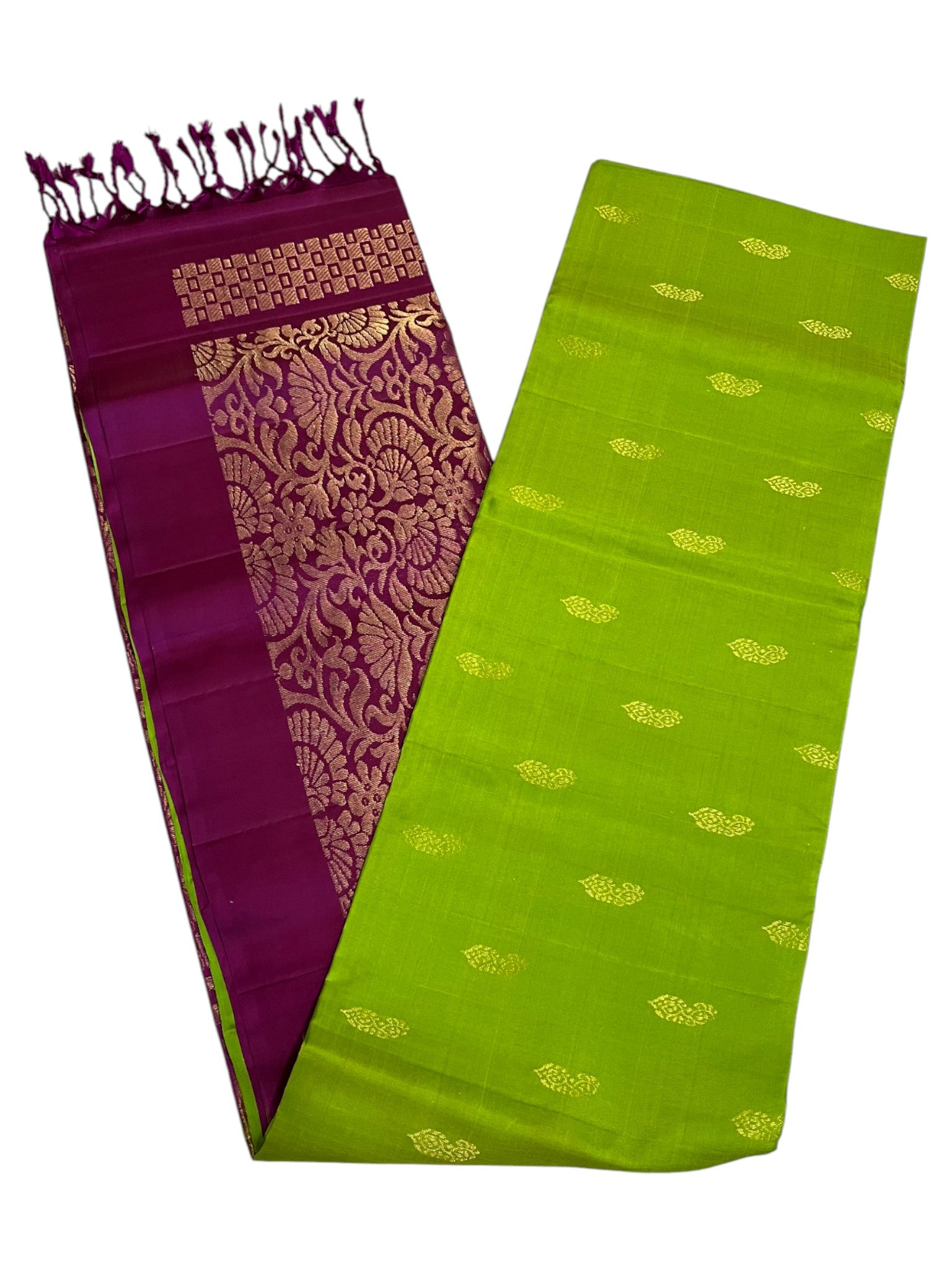 Southloom Pure Handloom Kanchipuram Silk Saree with Butta Work (Purple & Green)