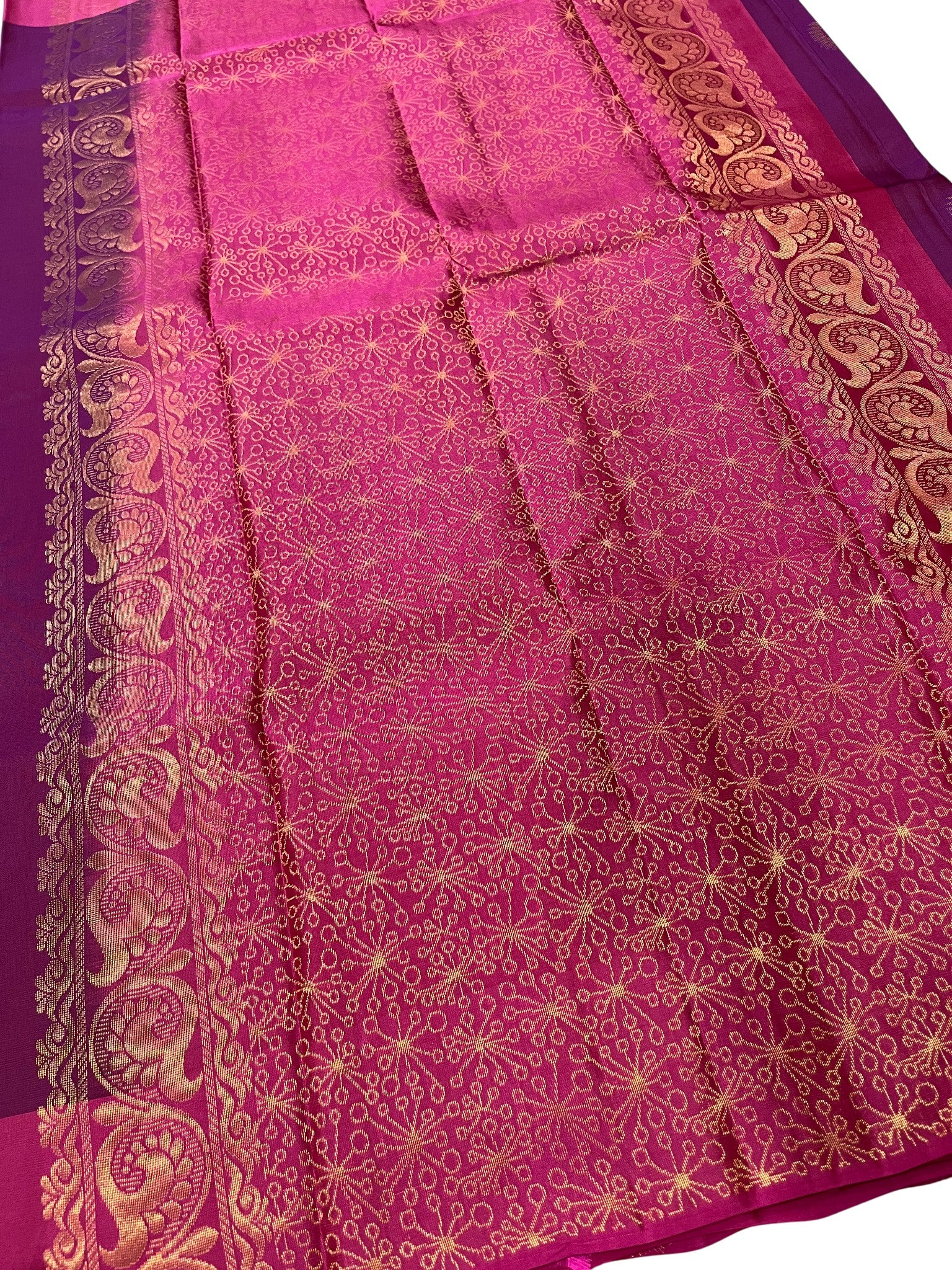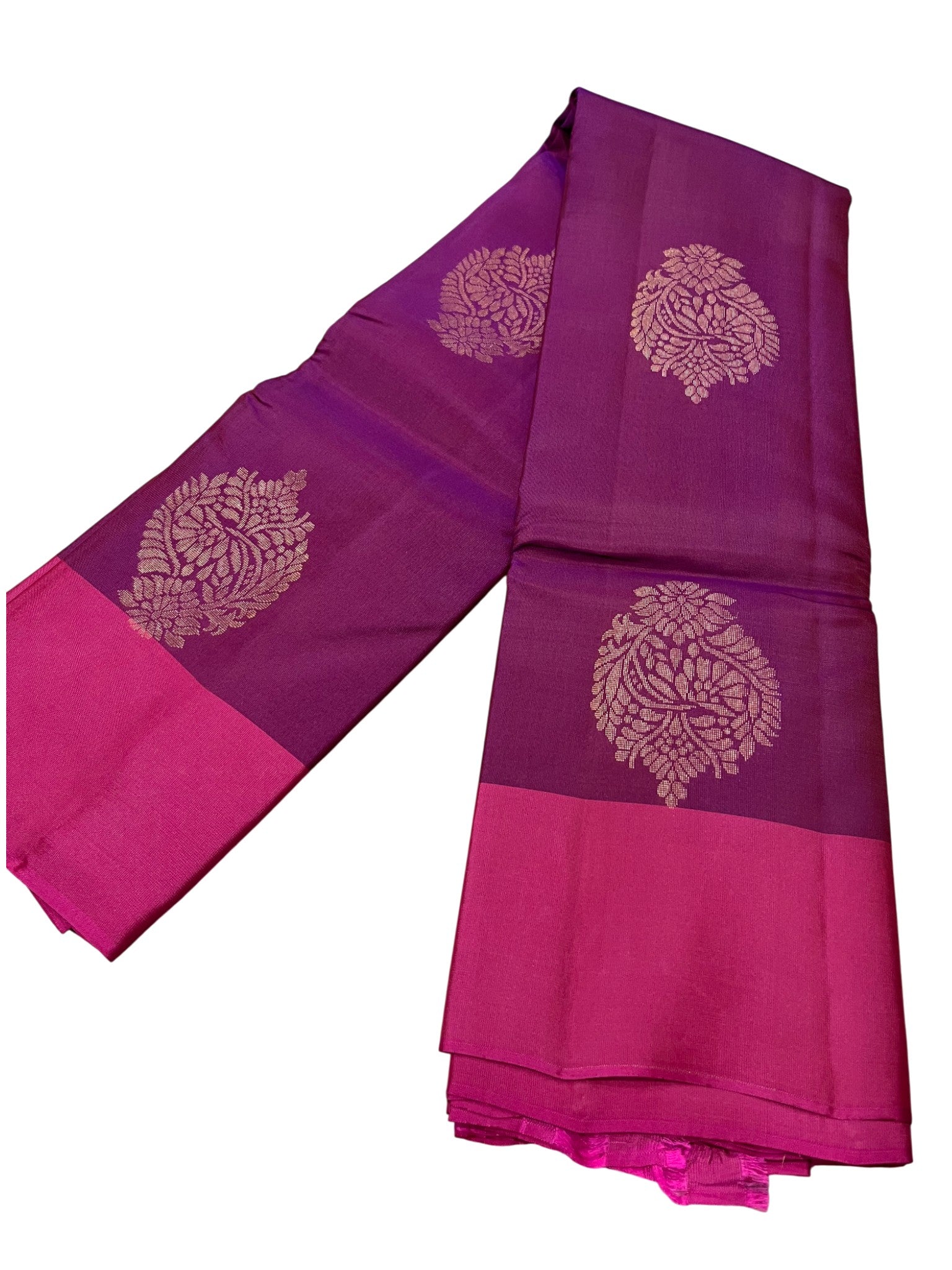 Southloom Pure Handloom Kanchipuram Silk Saree with Butta Work (Purple & Magenta)