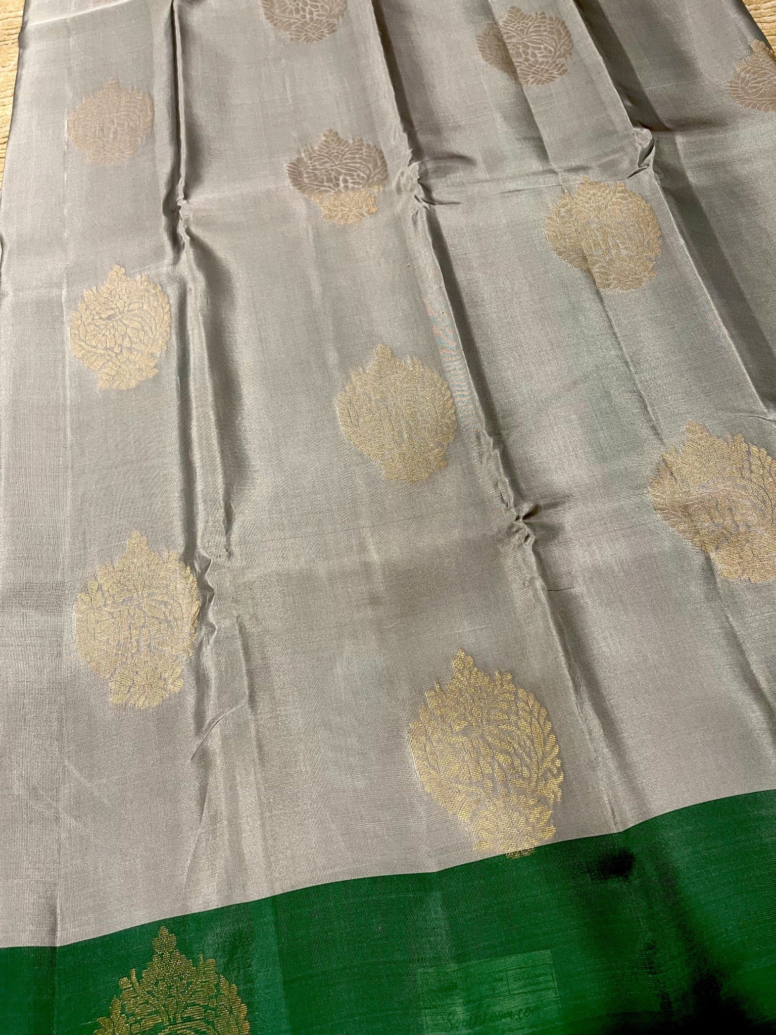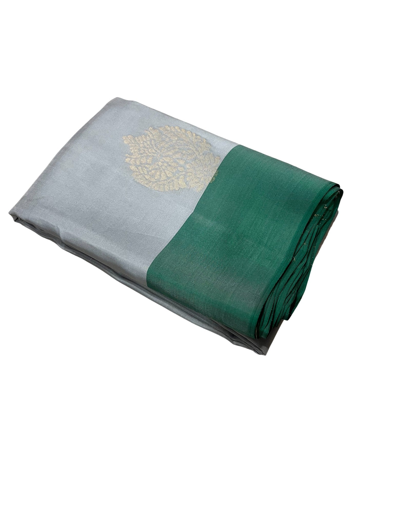 Southloom Pure Handloom Kanchipuram Silk Saree with Butta Work (Grey & Green)