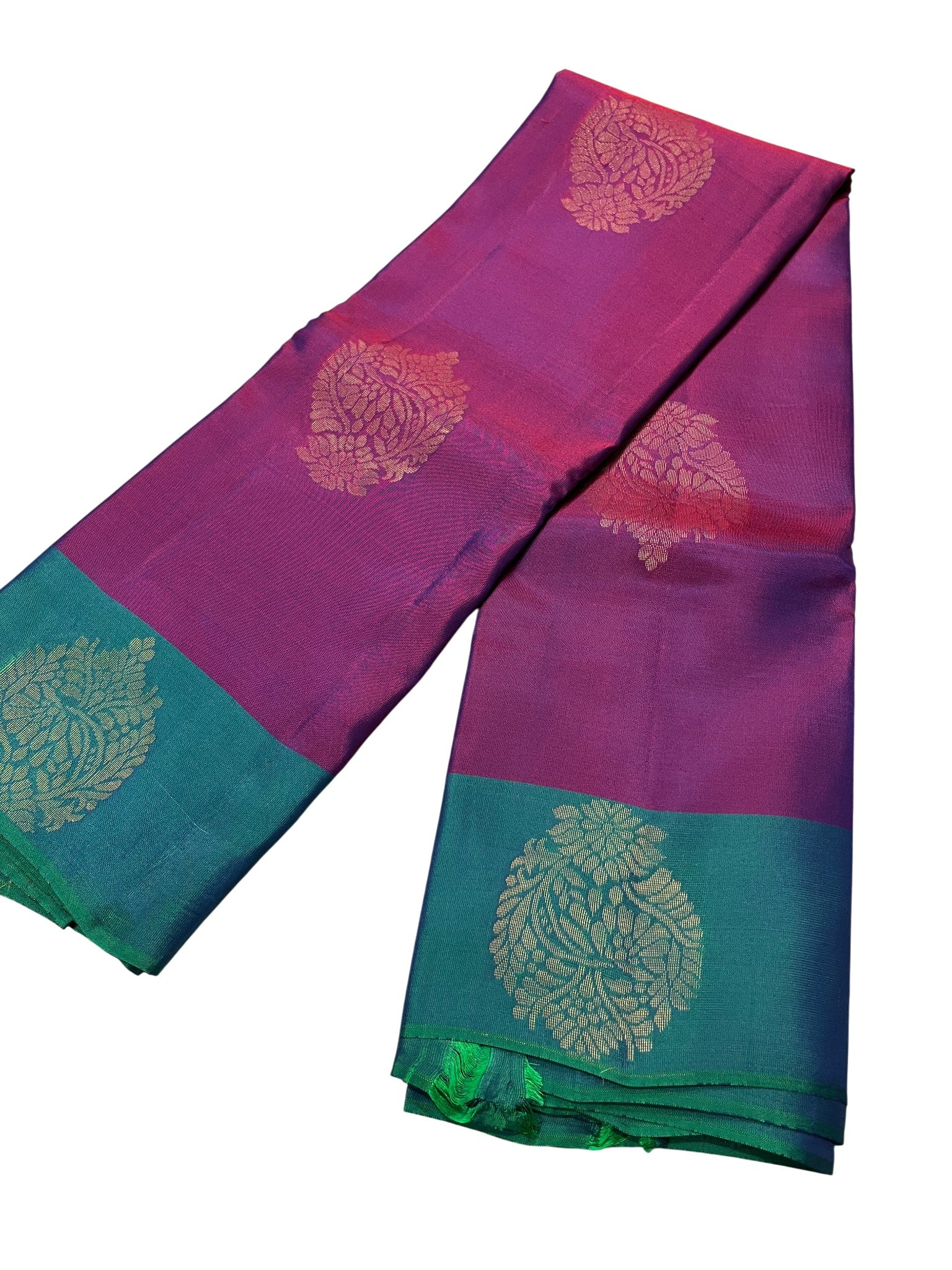 Southloom Pure Handloom Kanchipuram Silk Saree with Butta Work (Violet & Green)