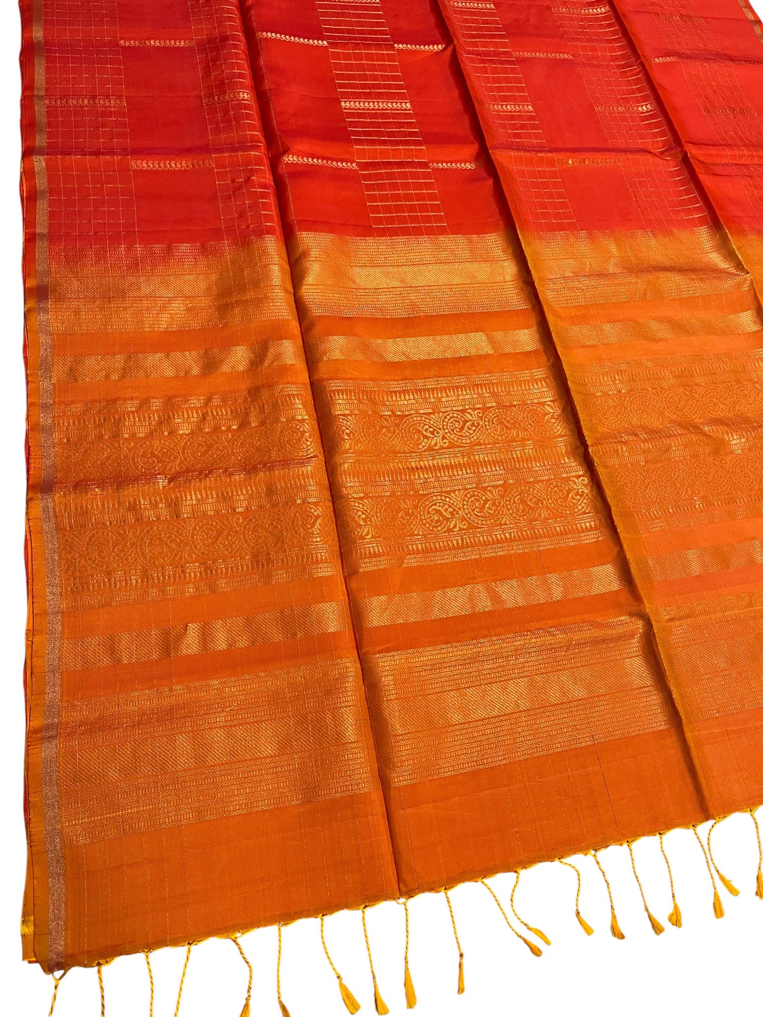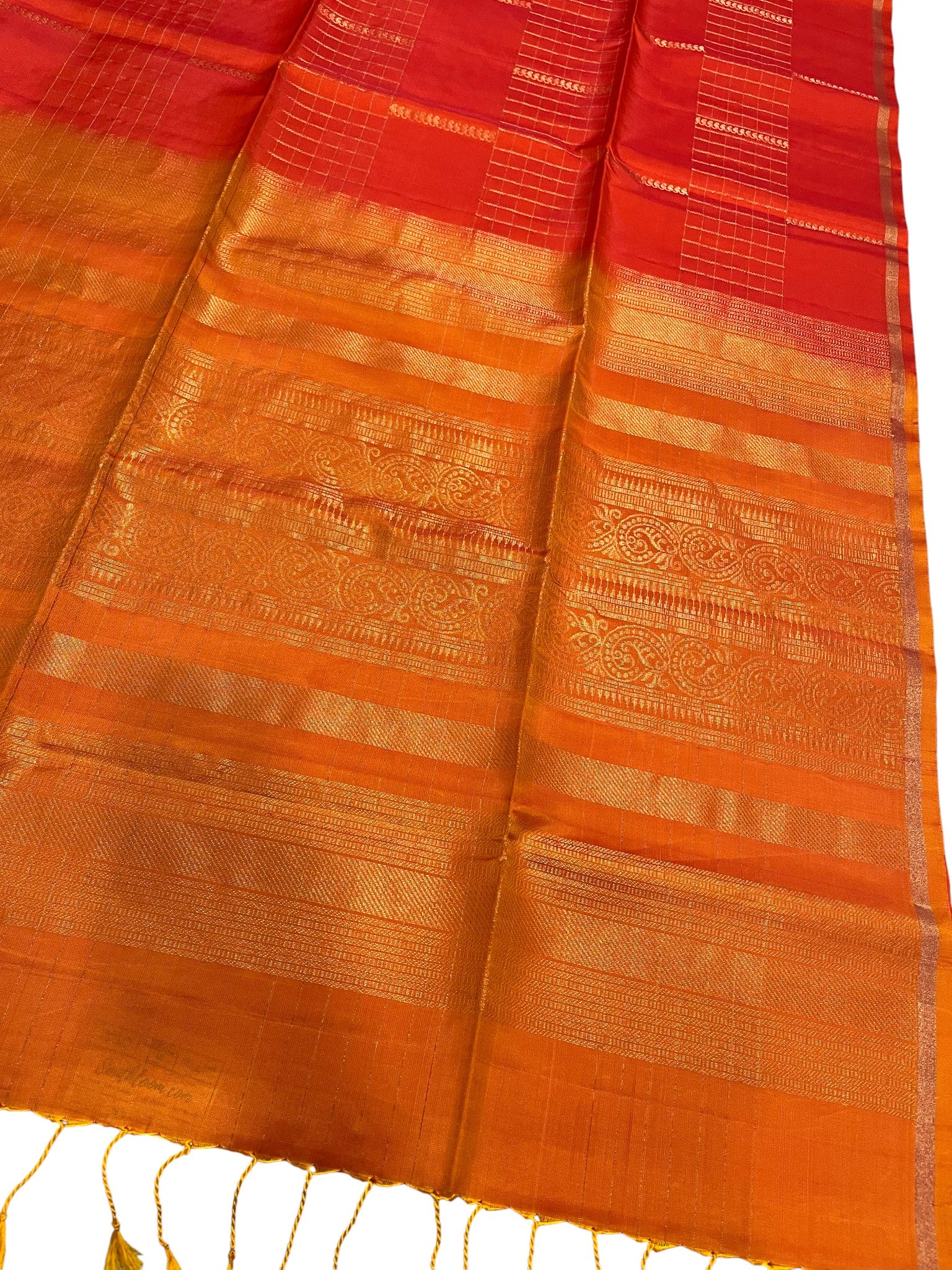 Southloom Pure Handloom Kanchipuram Silk Saree with Butta Work (Yellow & Orange)