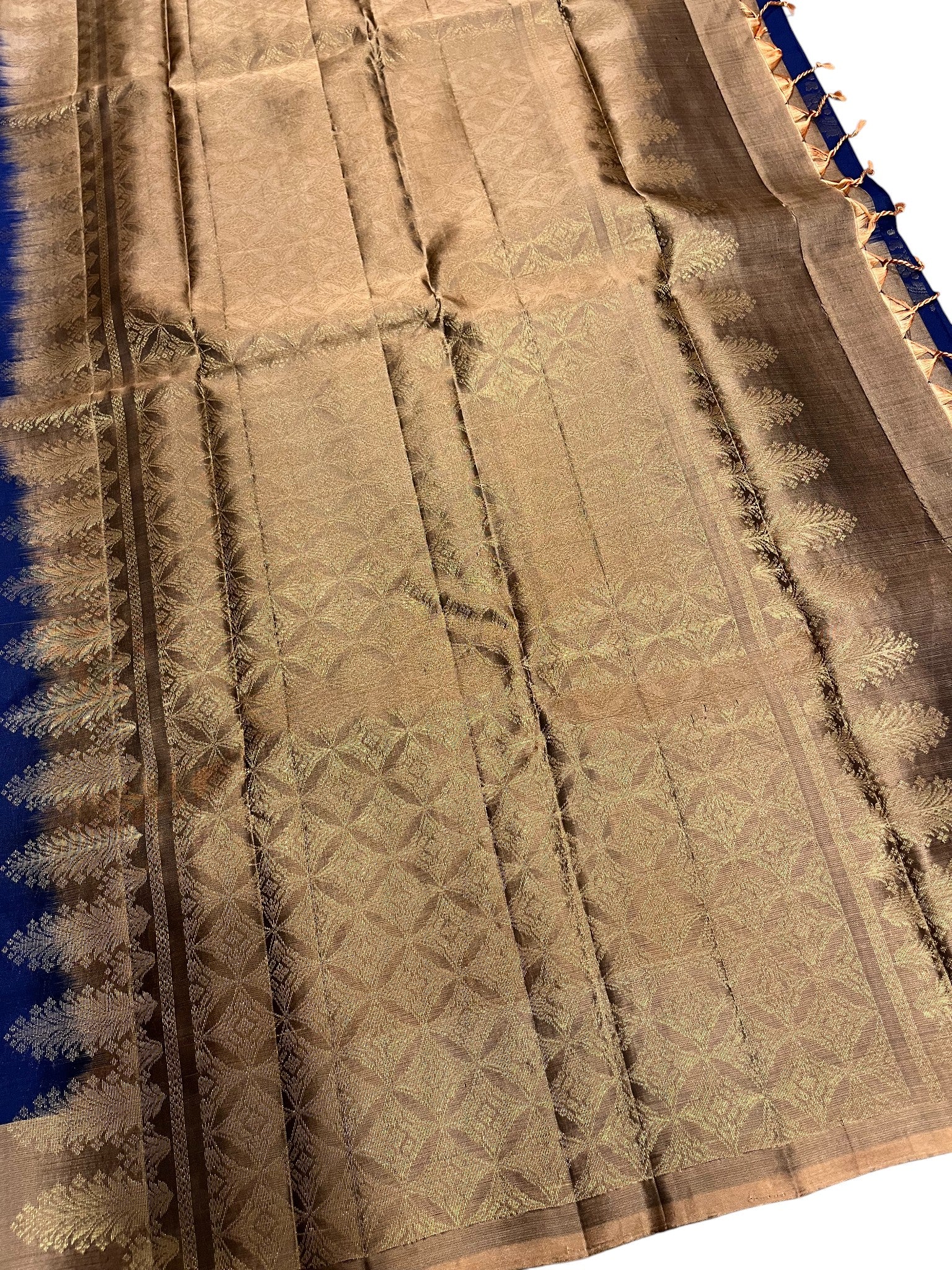 Southloom Pure Handloom Kanchipuram Silk Saree with Butta Work(Blue & Brown )