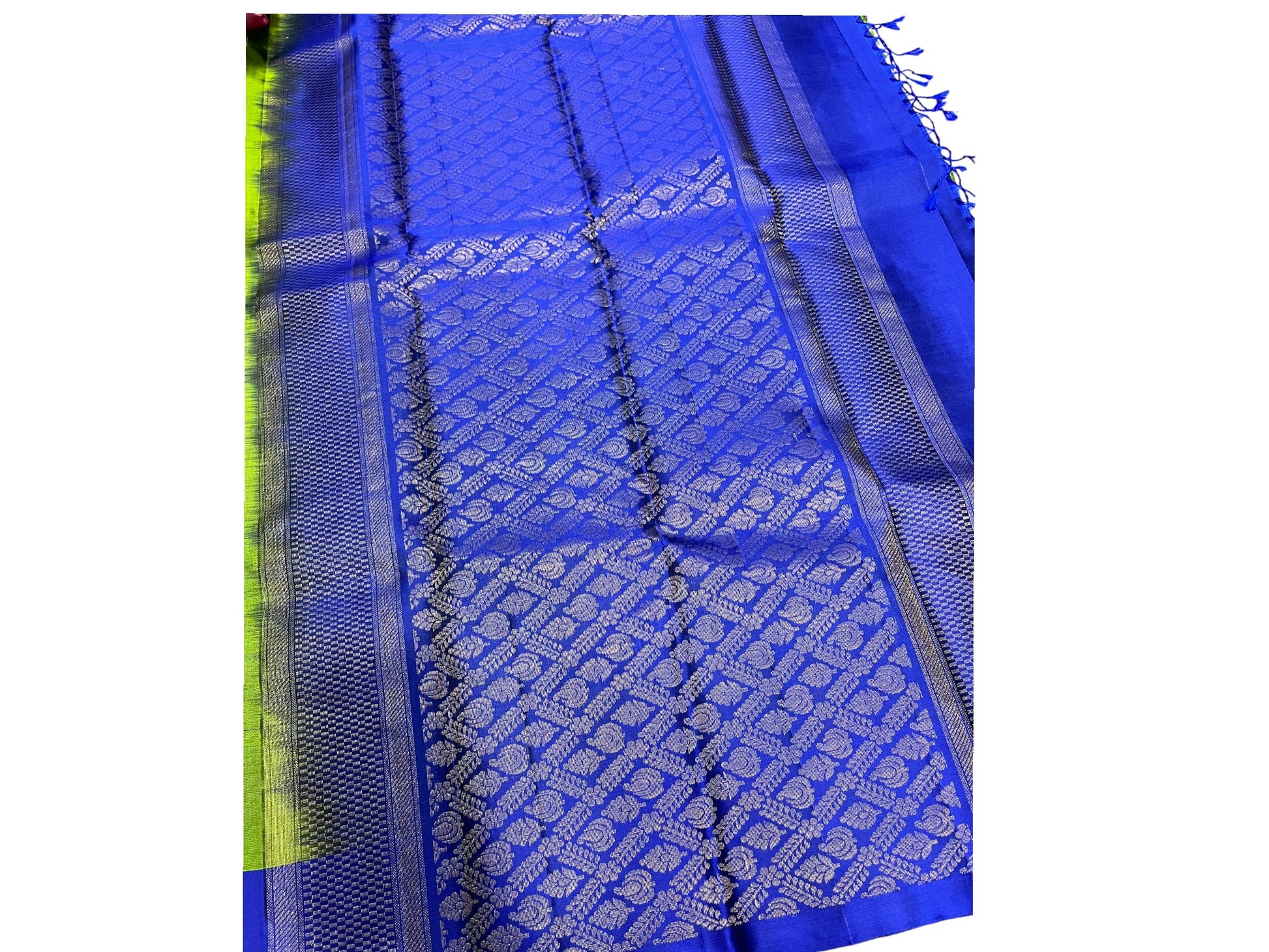 Material: 100% Pure Kanchipuram Silk with a lustrous finish