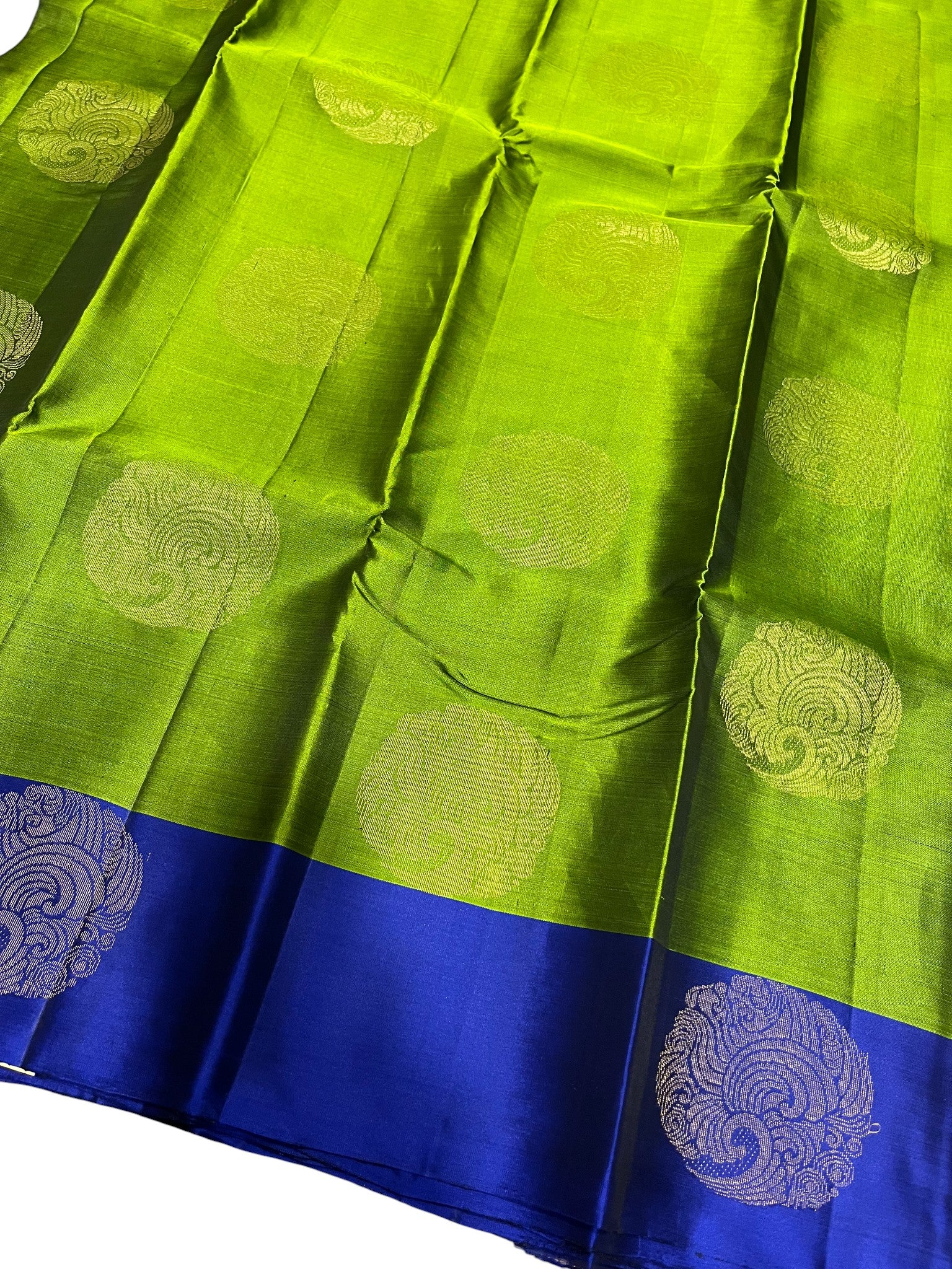 Southloom Pure Handloom Kanchipuram Silk Saree with Butta Work(Blue & Green)