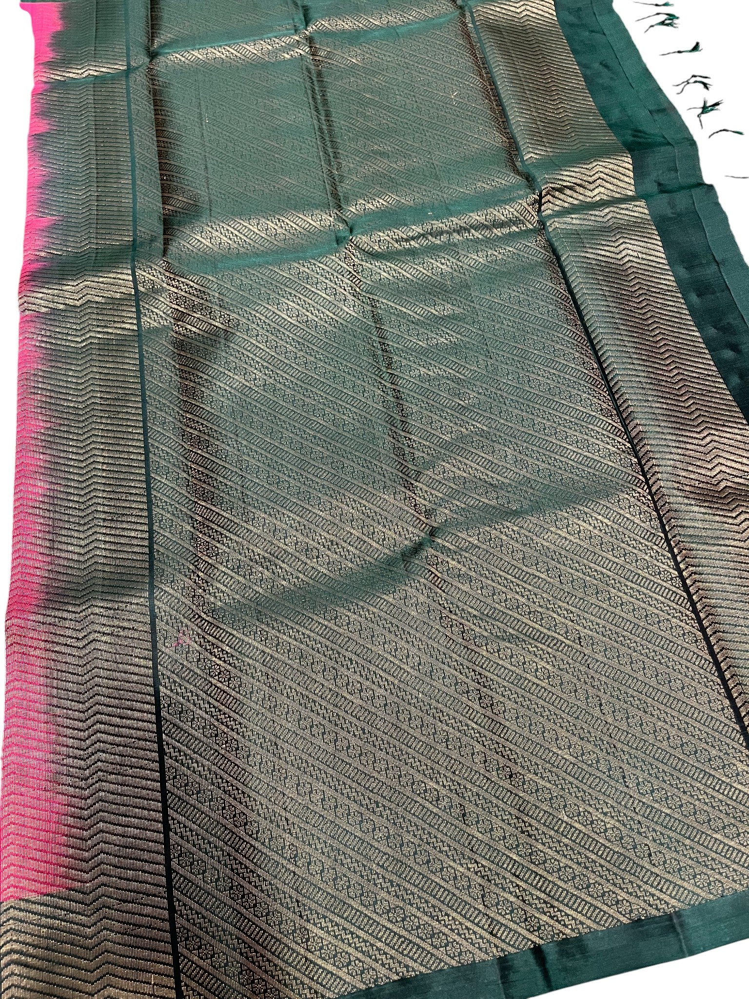 Southloom Pure Handloom Kanchipuram Silk Saree with Butta Work(Magenta& Green)