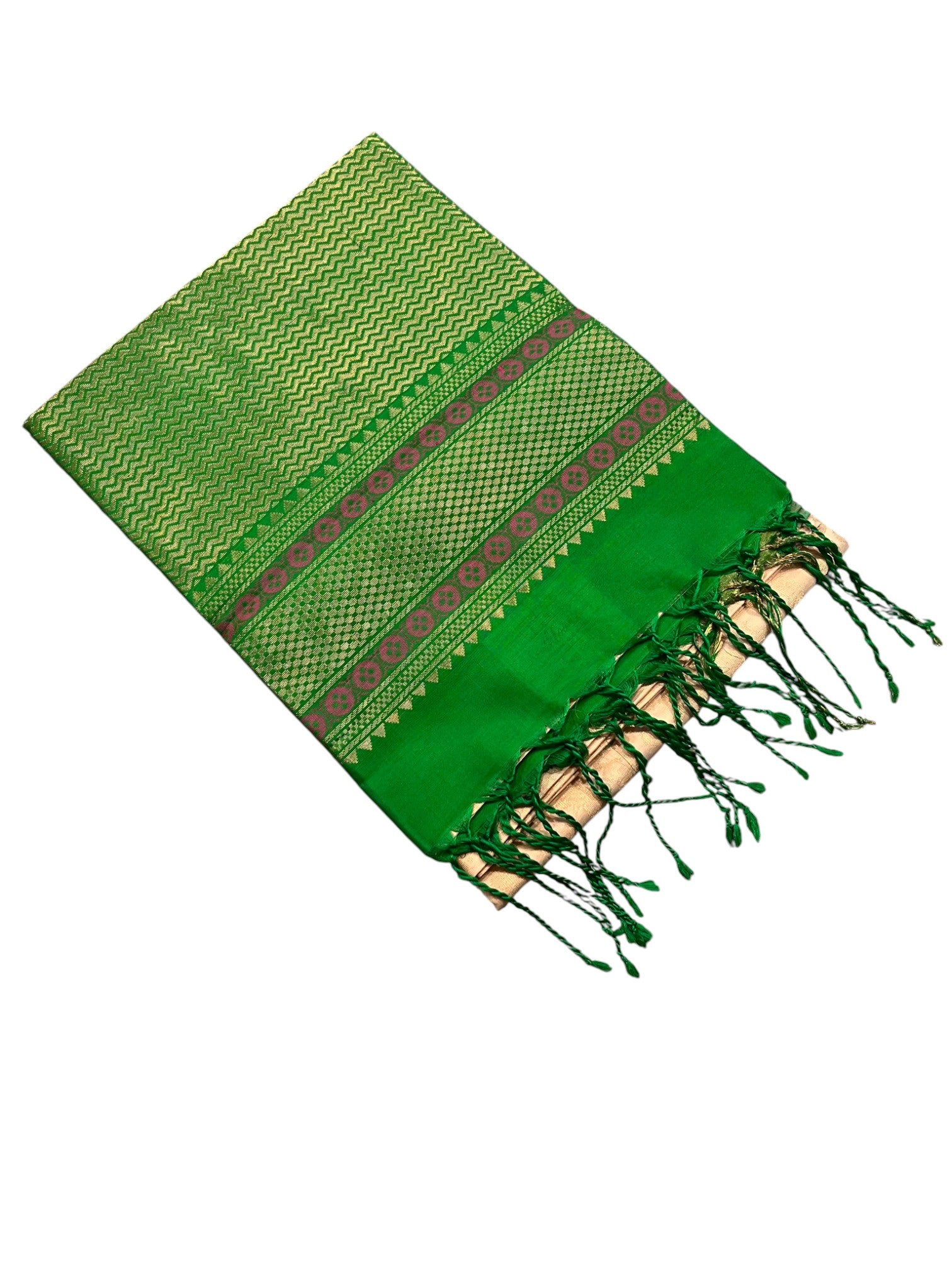 Material: 100% Pure Kanchipuram Silk with a lustrous finish