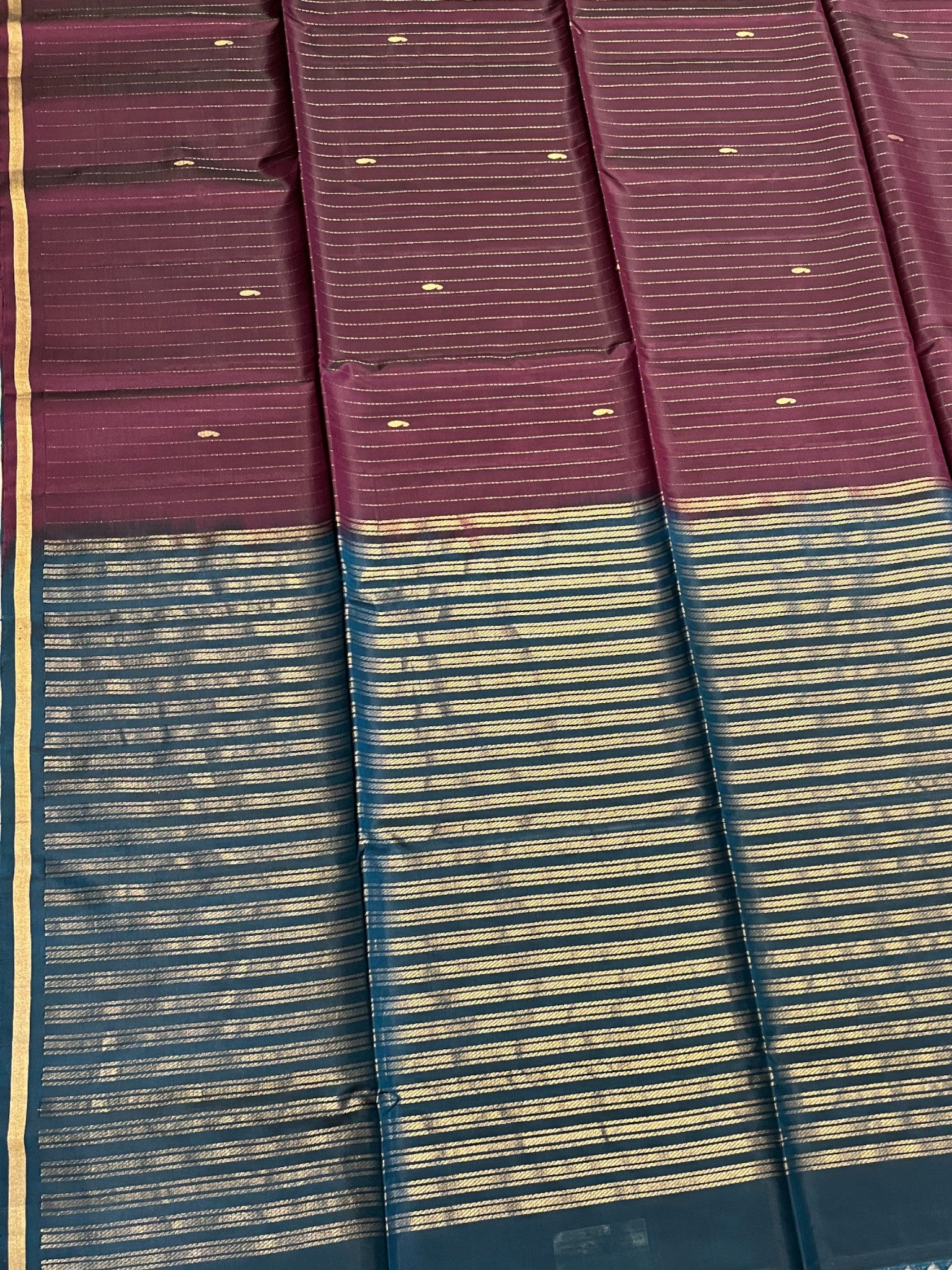 Southloom Pure Handloom Kanchipuram Silk Saree with Korvai Work (Blue & Maroon)