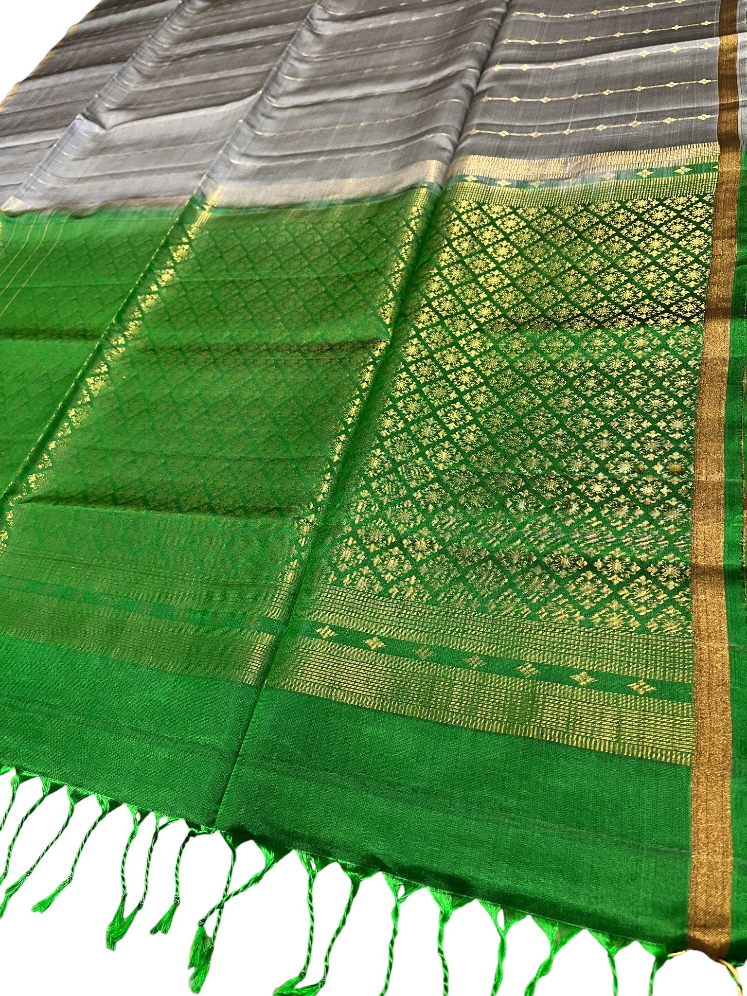 Southloom Pure Handloom Kanchipuram Silk Saree with Korvai Work (Green & Grey)