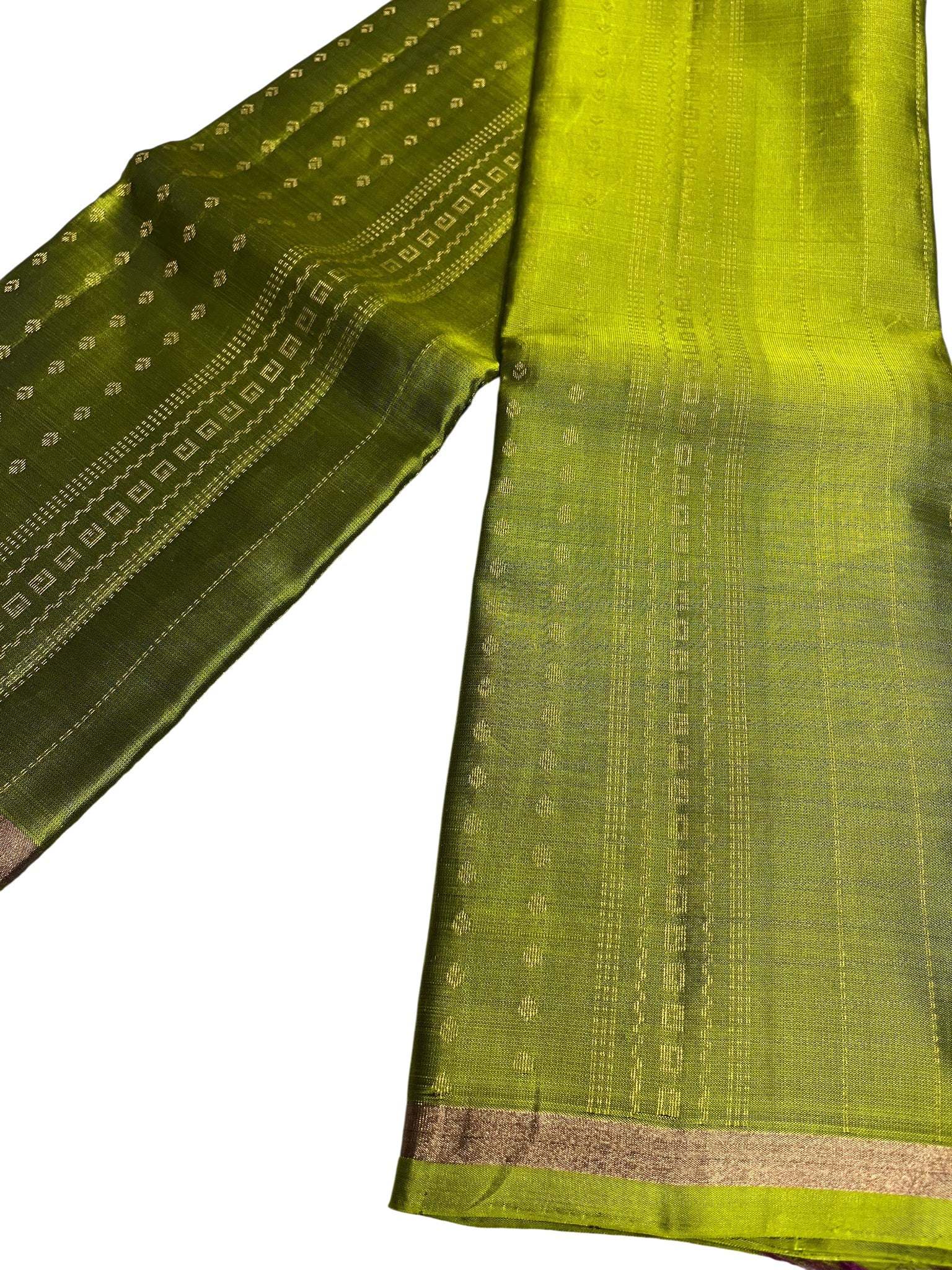 Material: 100% Pure Kanchipuram Silk with a lustrous finish
