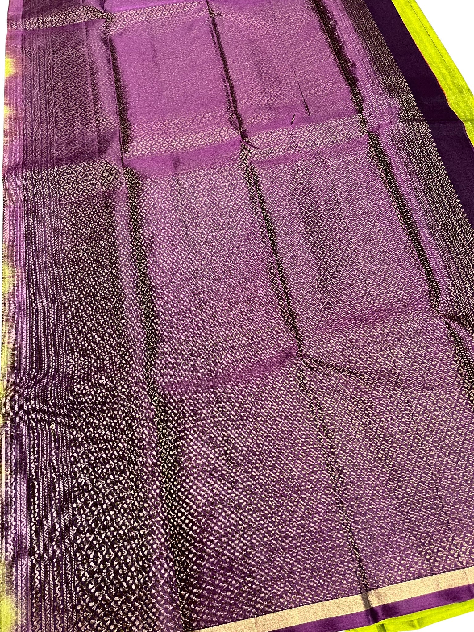 Southloom Pure Handloom Kanchipuram Silk Saree with Korvai Work (Green & Violet)