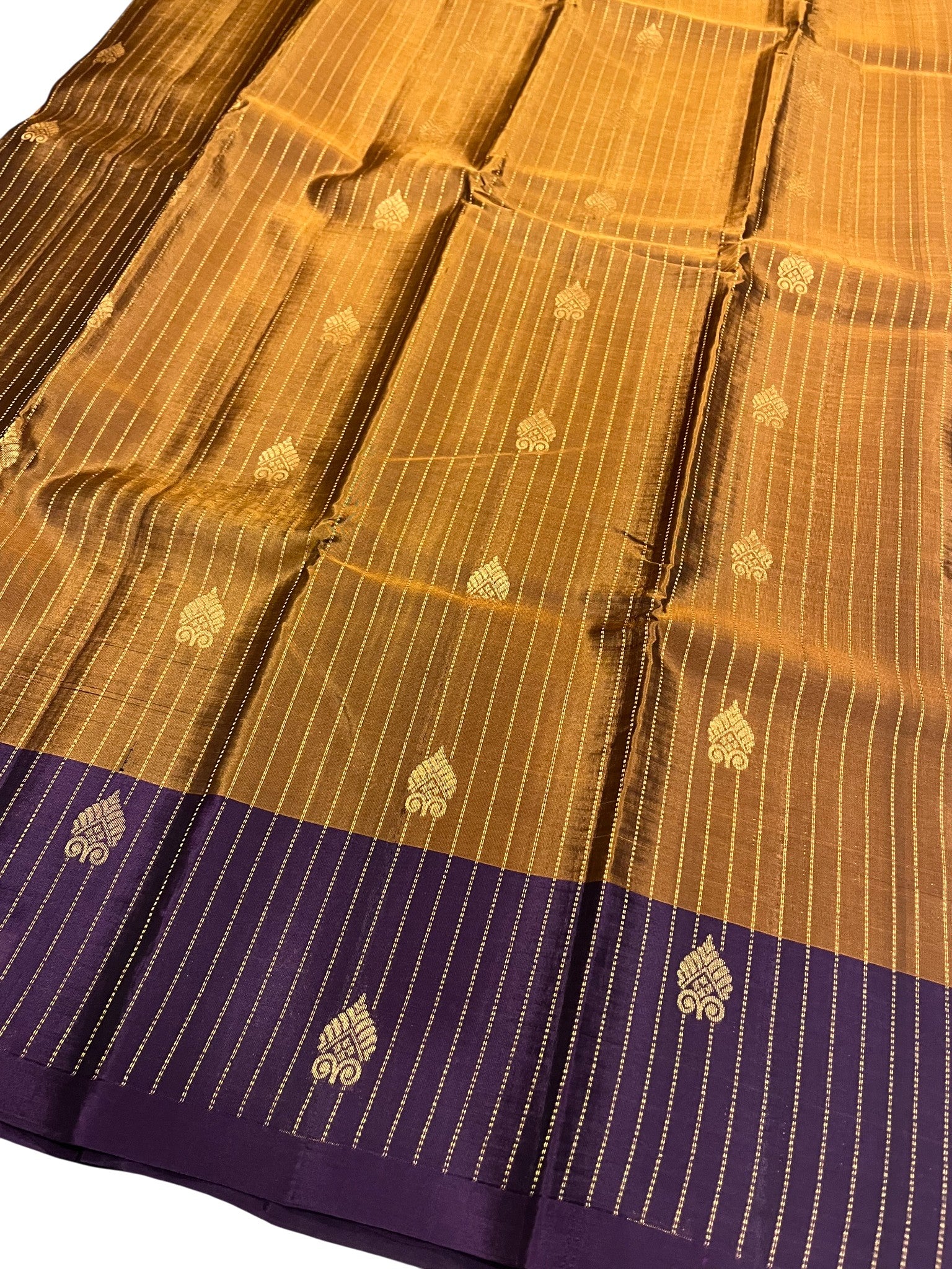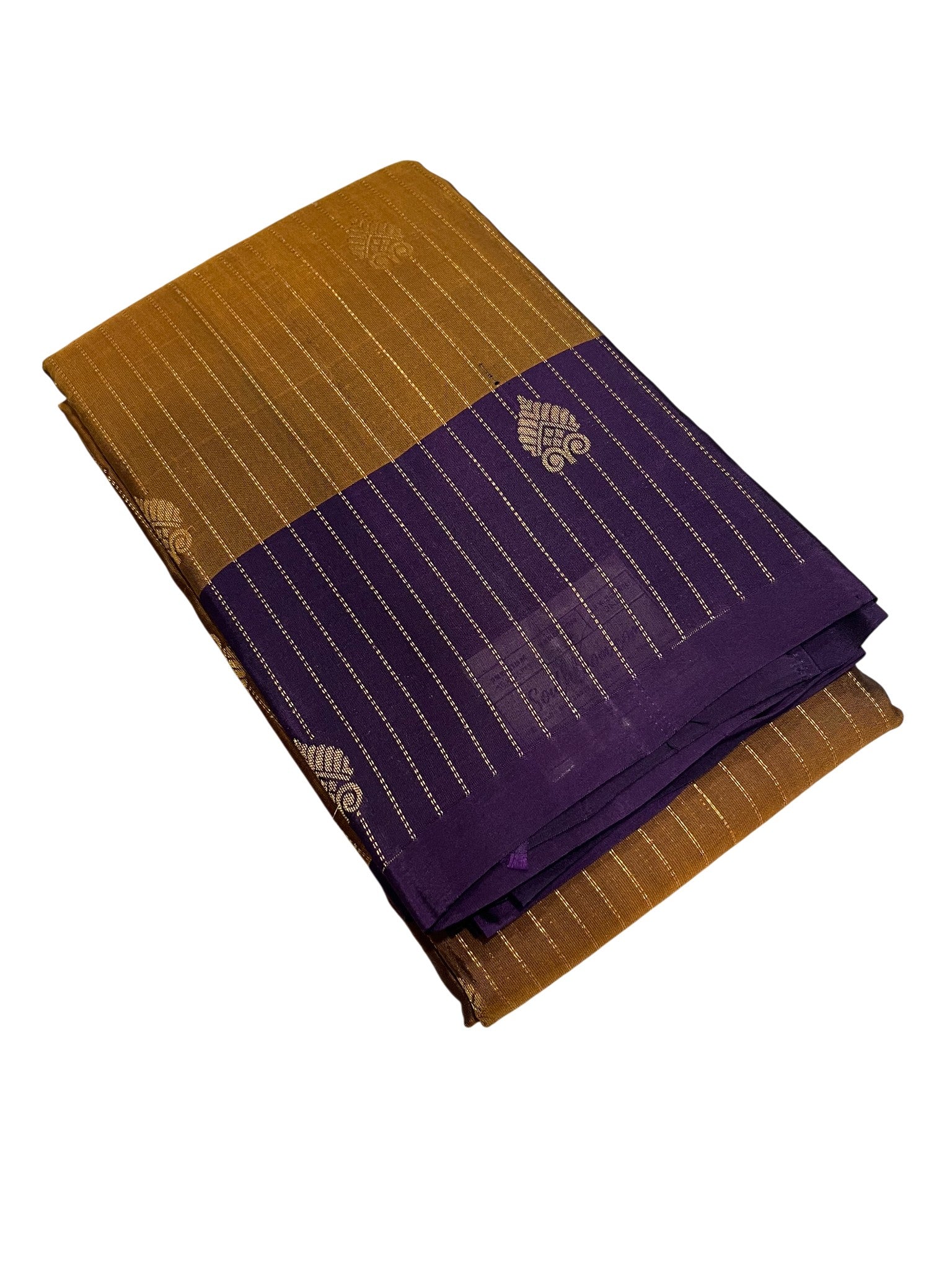 Southloom Pure Handloom Kanchipuram Silk Saree with Korvai Work (Brown & Violet)
