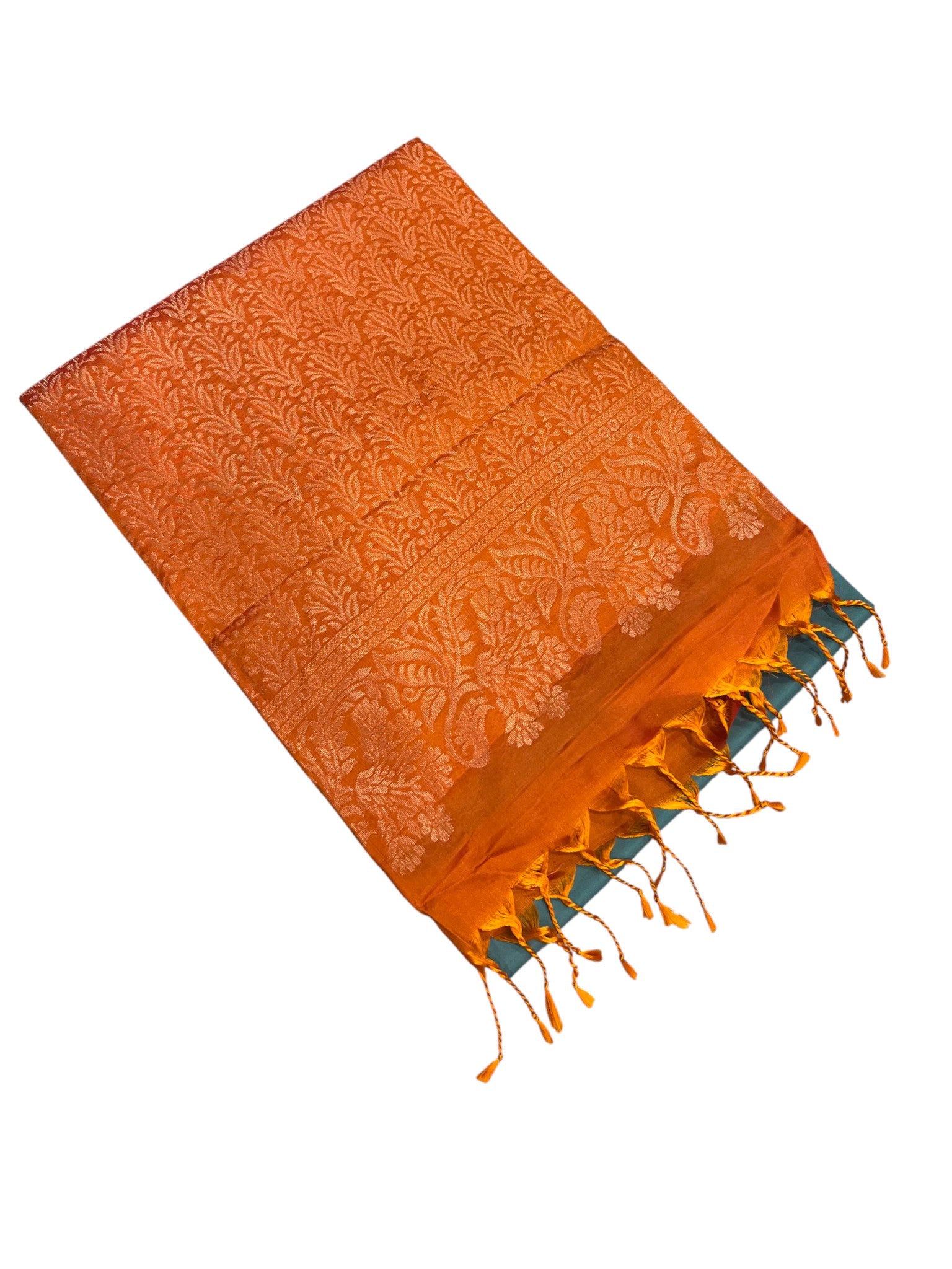 Southloom Pure Handloom Kanchipuram Silk Saree with Korvai Work (Orange & Blue)
