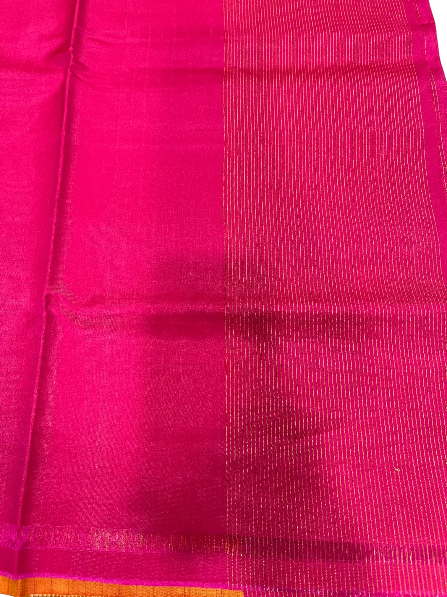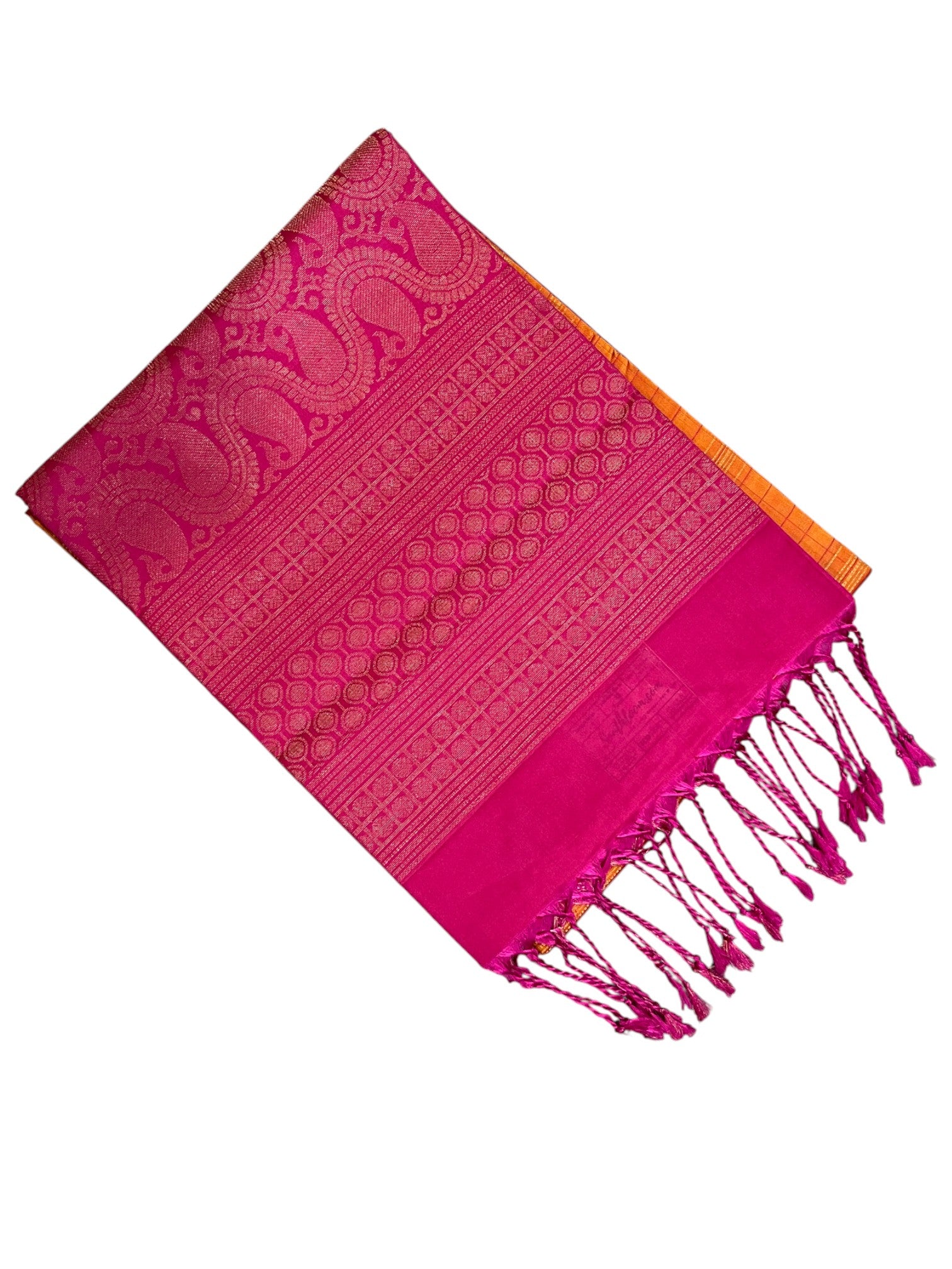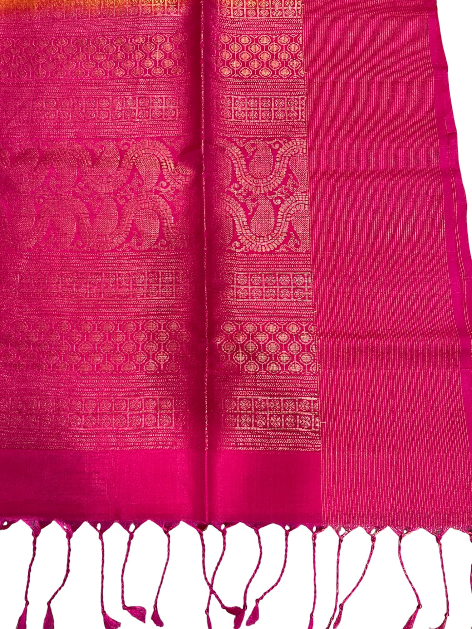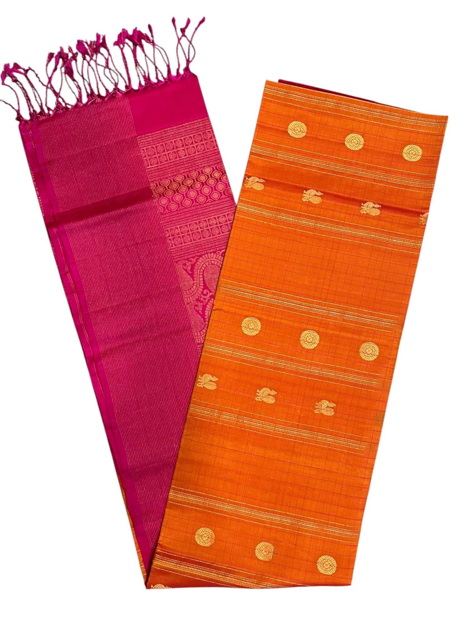 Southloom Pure Handloom Kanchipuram Silk Saree with Korvai Work (Orange & Magenta)