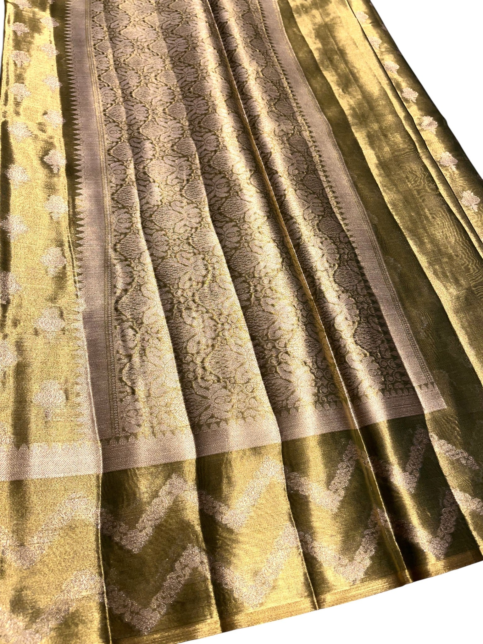 Southloom Semi Banarasi Katan Tissue Saree with Woven Work on Body and Borders
