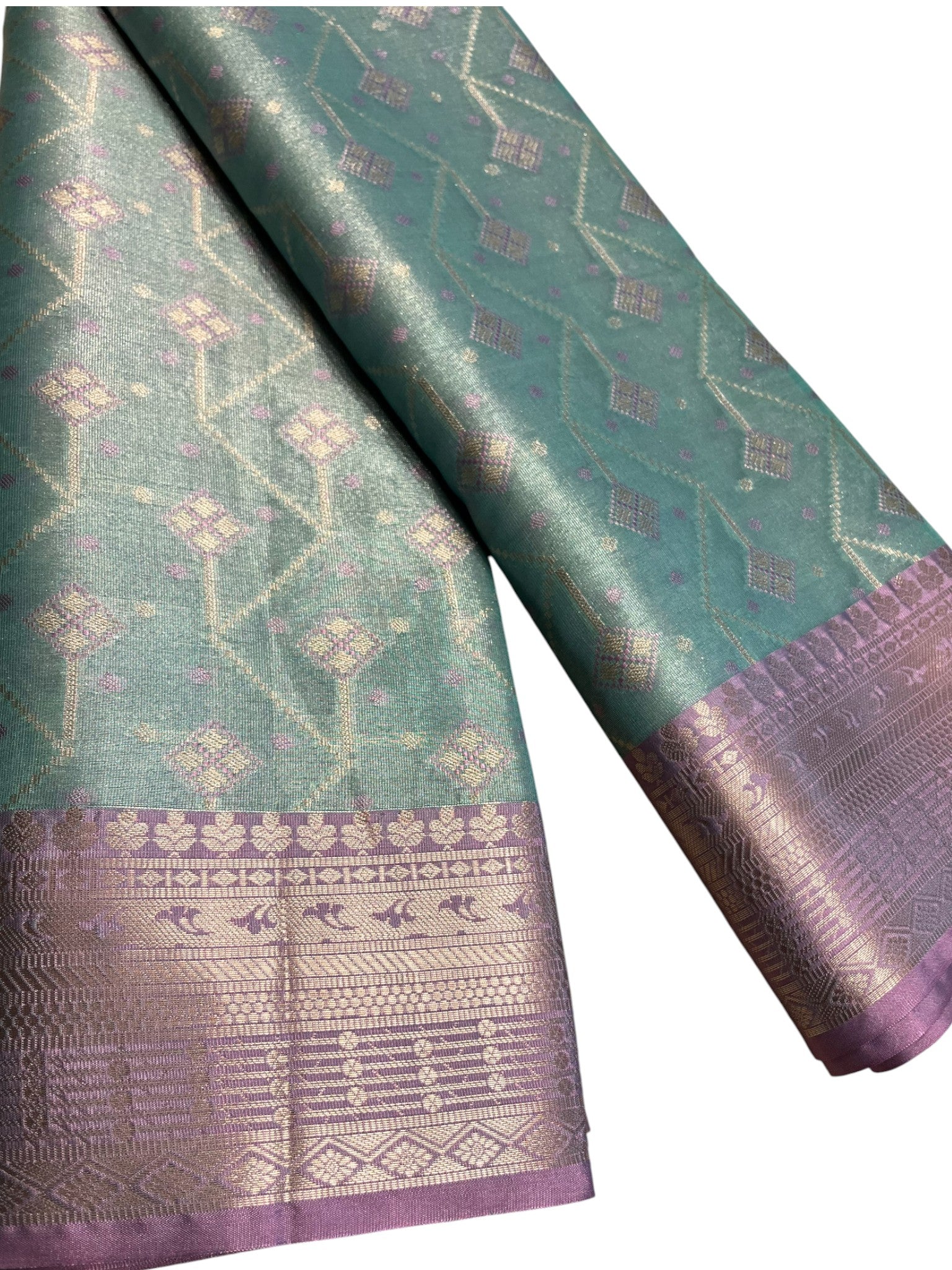 Southloom Semi Banarasi Katan Tissue Saree with Woven Work on Body and Borders