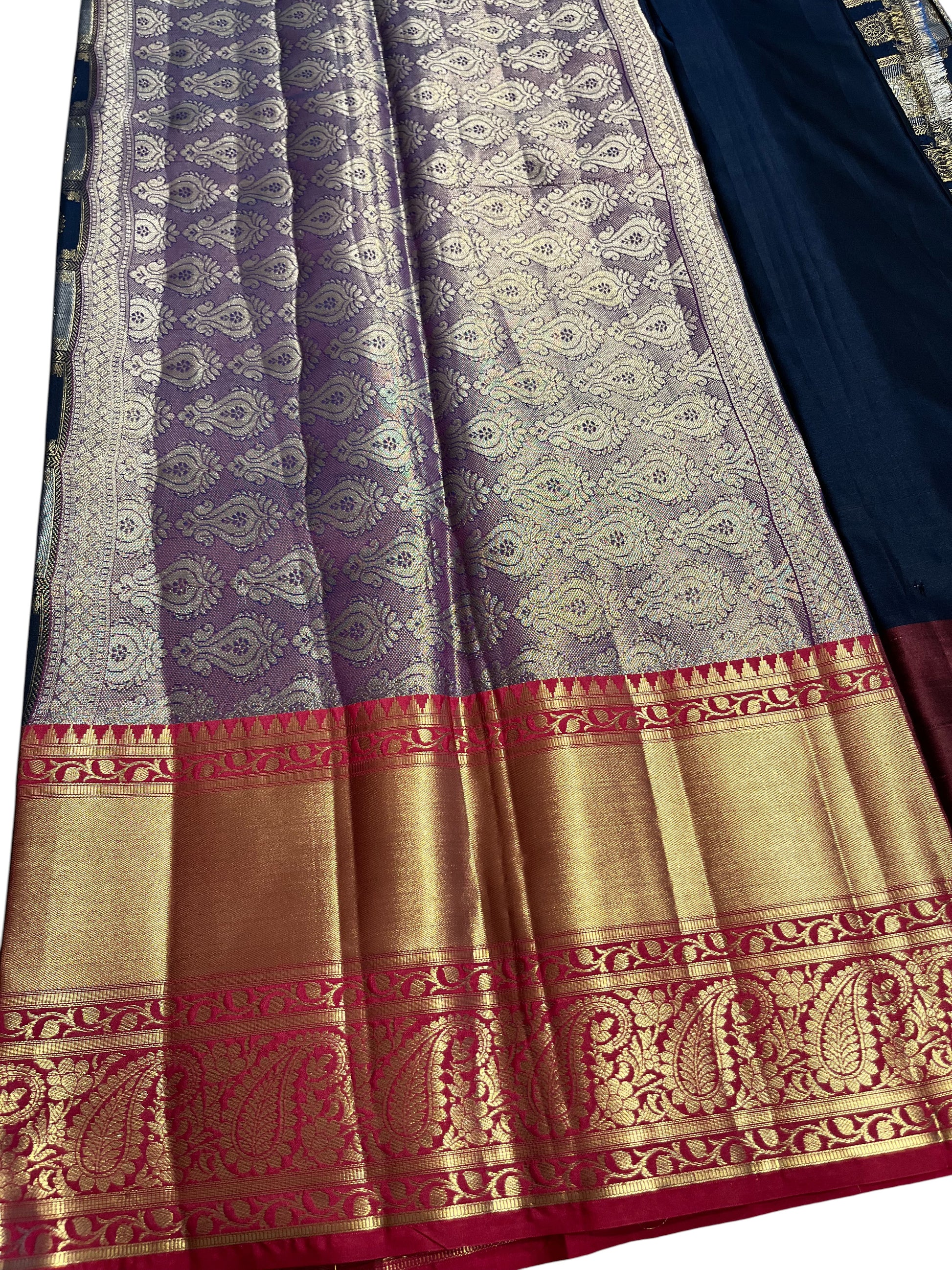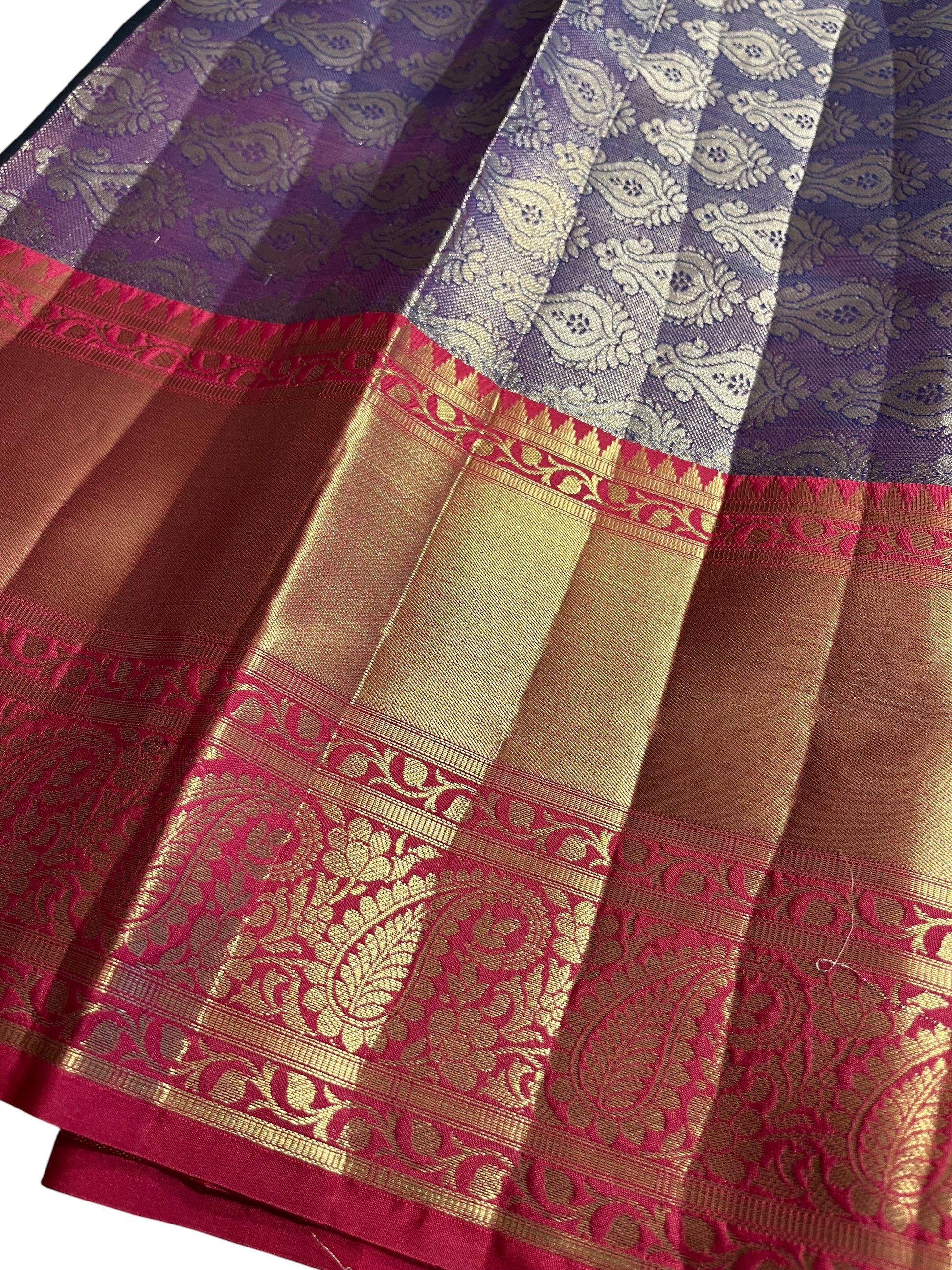 Southloom Semi Banarasi Katan Tissue Saree with Woven Work on Body and Borders (Magenta & Blue)