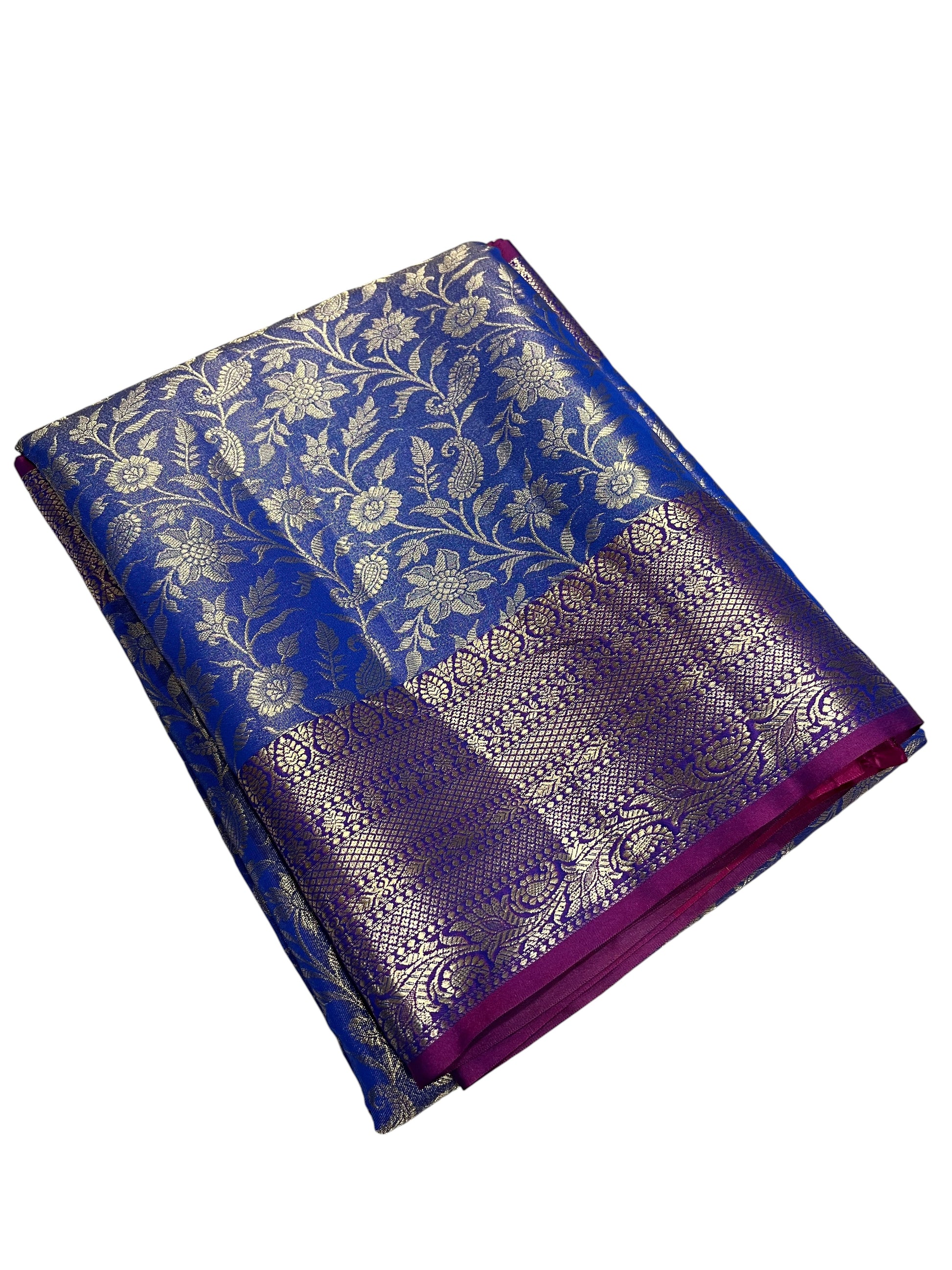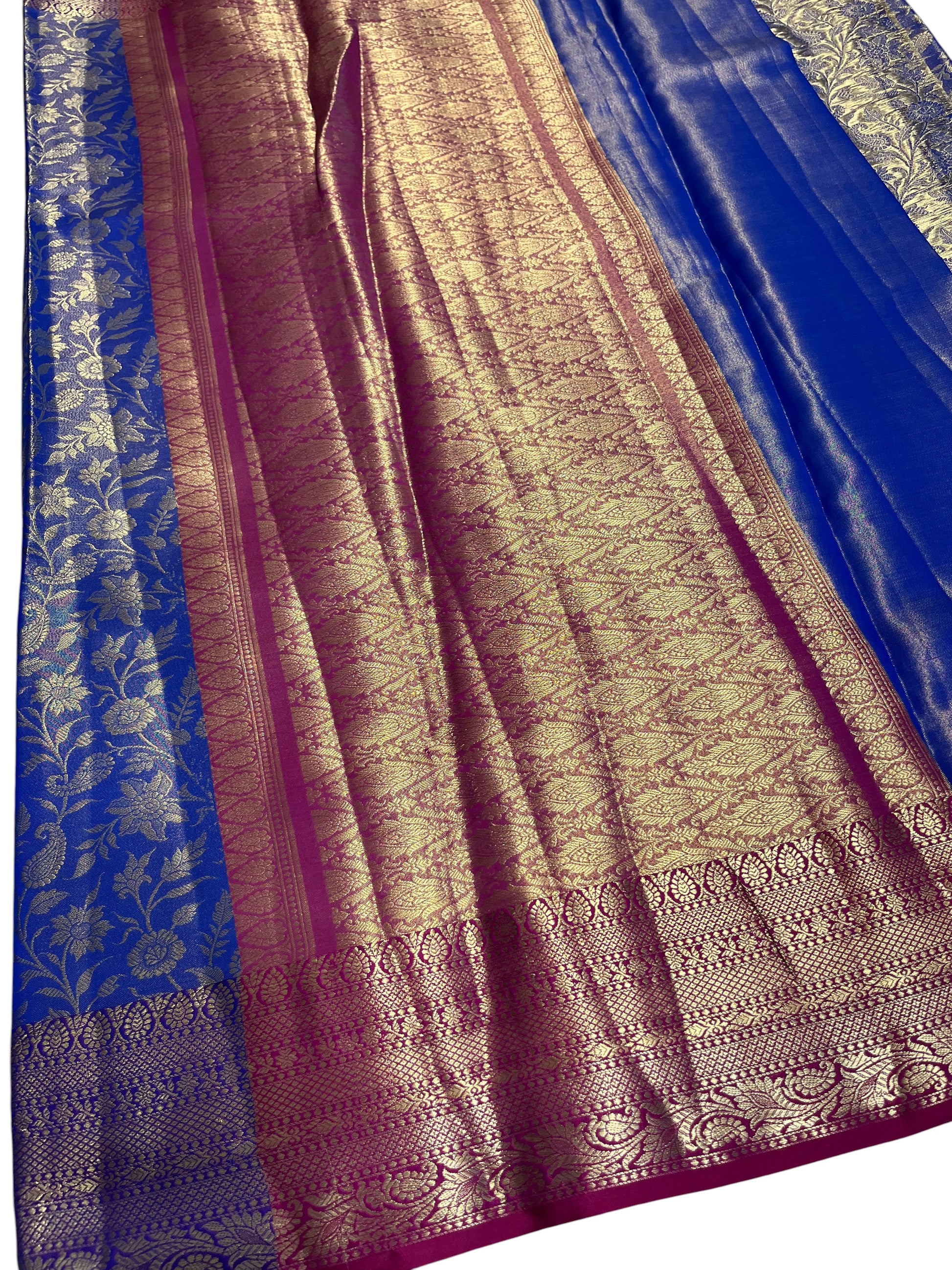 Southloom Semi Banarasi Katan Tissue Saree with Woven Work on Body and Borders (Magenta & Blue)