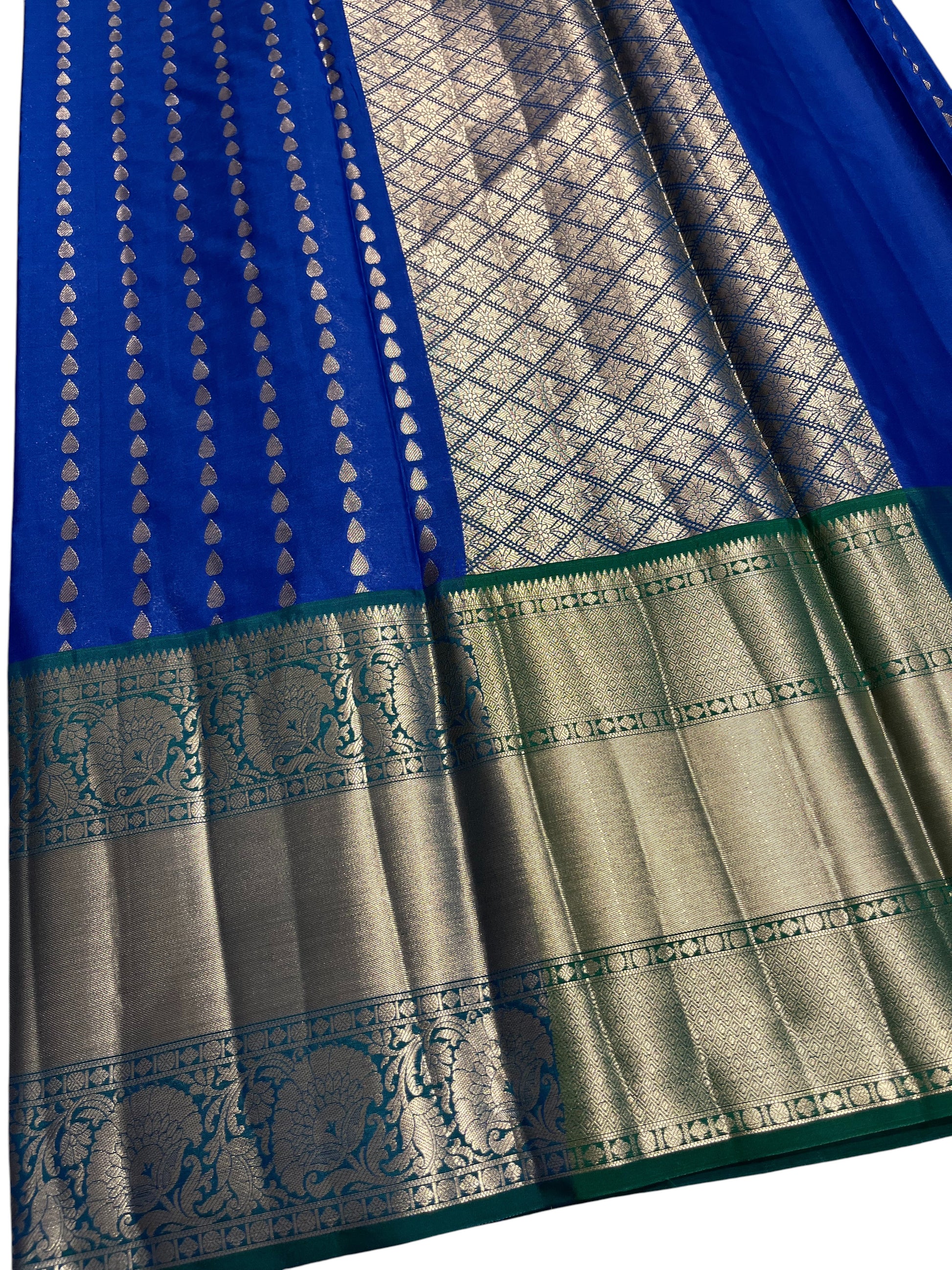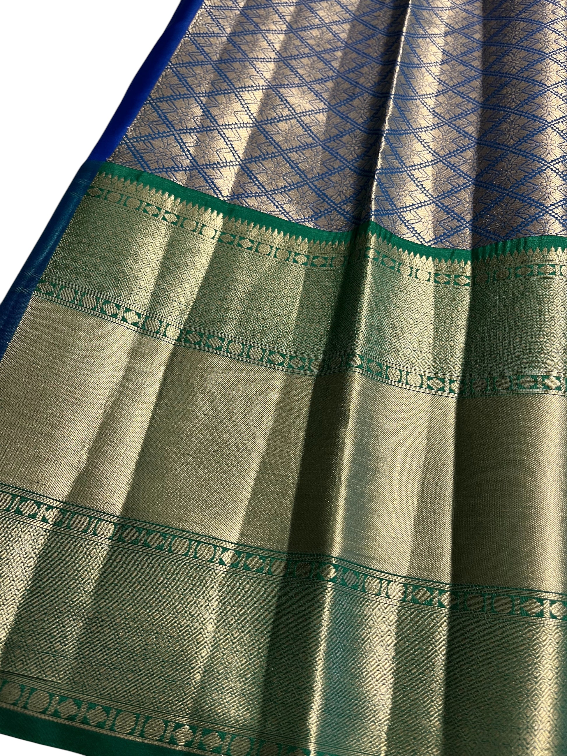 Southloom Semi Banarasi Katan Tissue Saree with Woven Work on Body and Borders (Green & Blue)