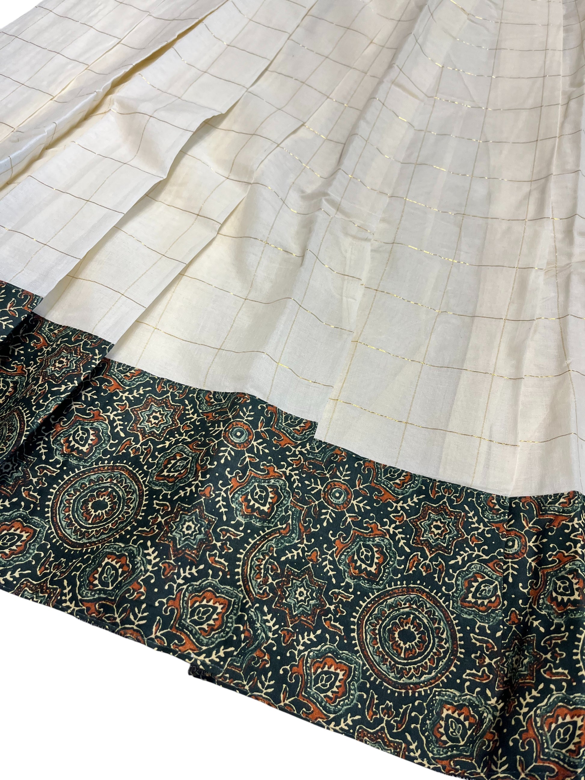 Southloom Semi Stitched Cottan Dhavani Set with Pavada and Ajrakh Blouse Piece